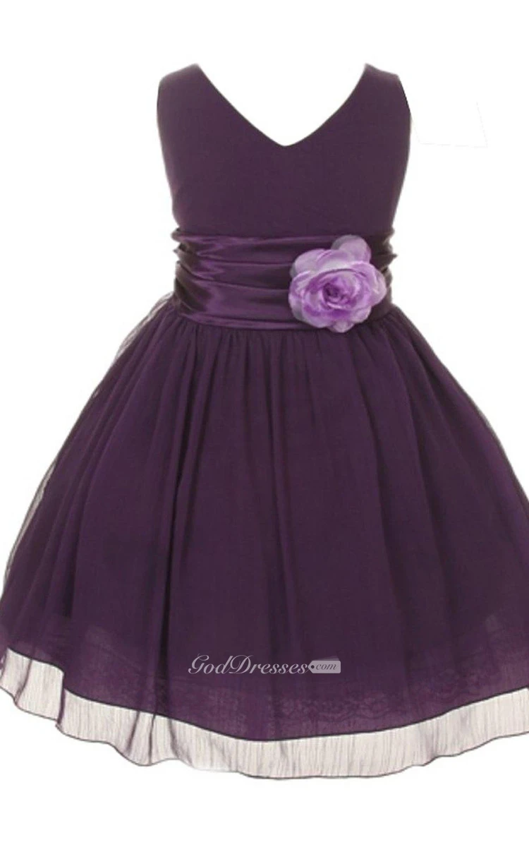 Sleeveless V-neck A-line Dress With Flower and Pleats