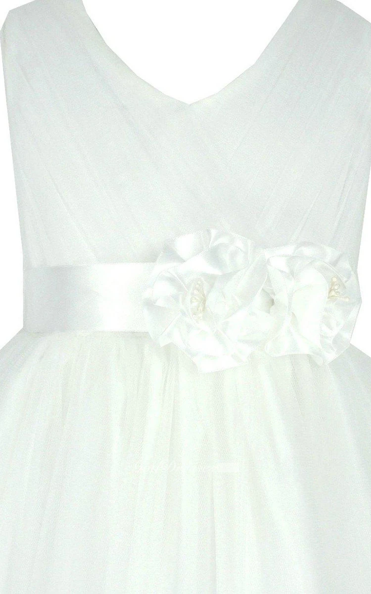 Sleeveless V-neck A-line Dress With Pleats and Bow