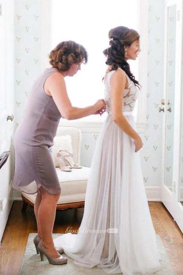 After trying on several dresses nearly identical to this one at the big name bridal store and being discouraged at how expensive they were I decided to try this one. It was the best decision ever! Great quality dress that fits perfect. It has to be hemmed because I'm short but the alterations are easy to do and will not cost a fortune! I highly recommend this dress!