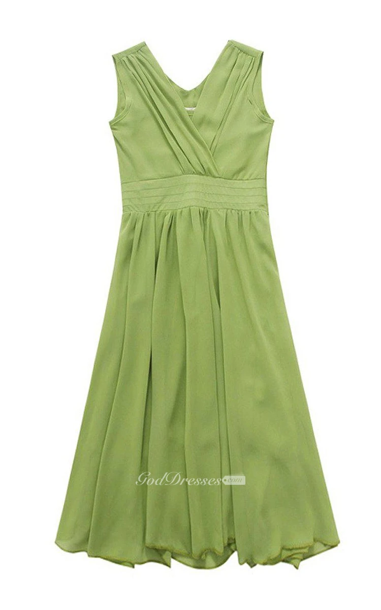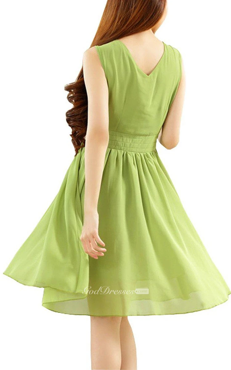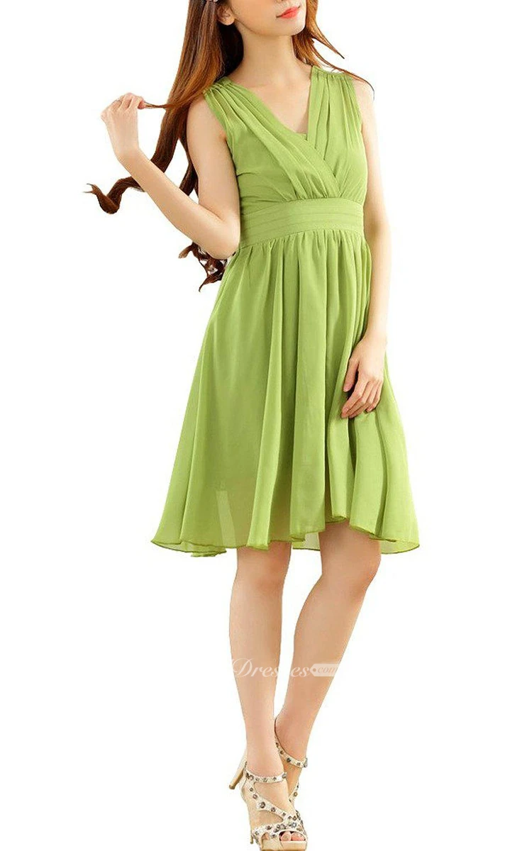 Sleeveless V-neck A-line Short Ruched Chiffon Dress