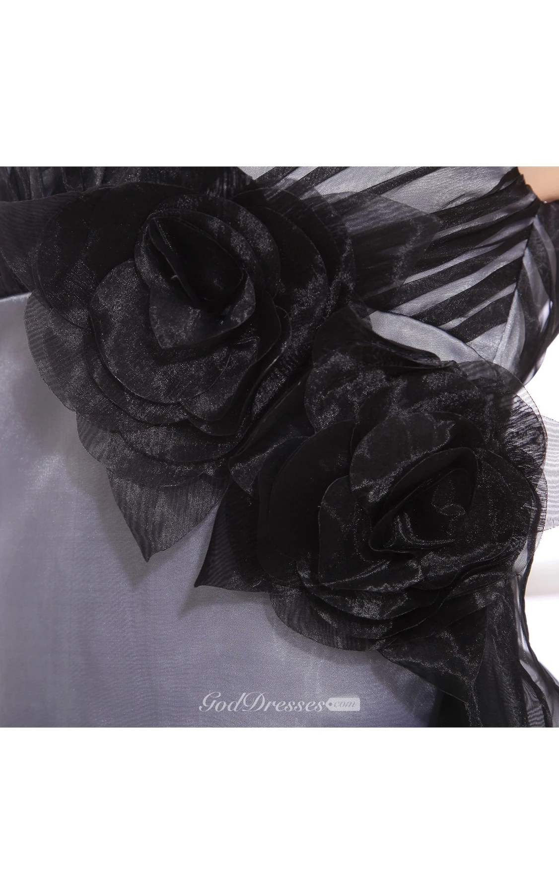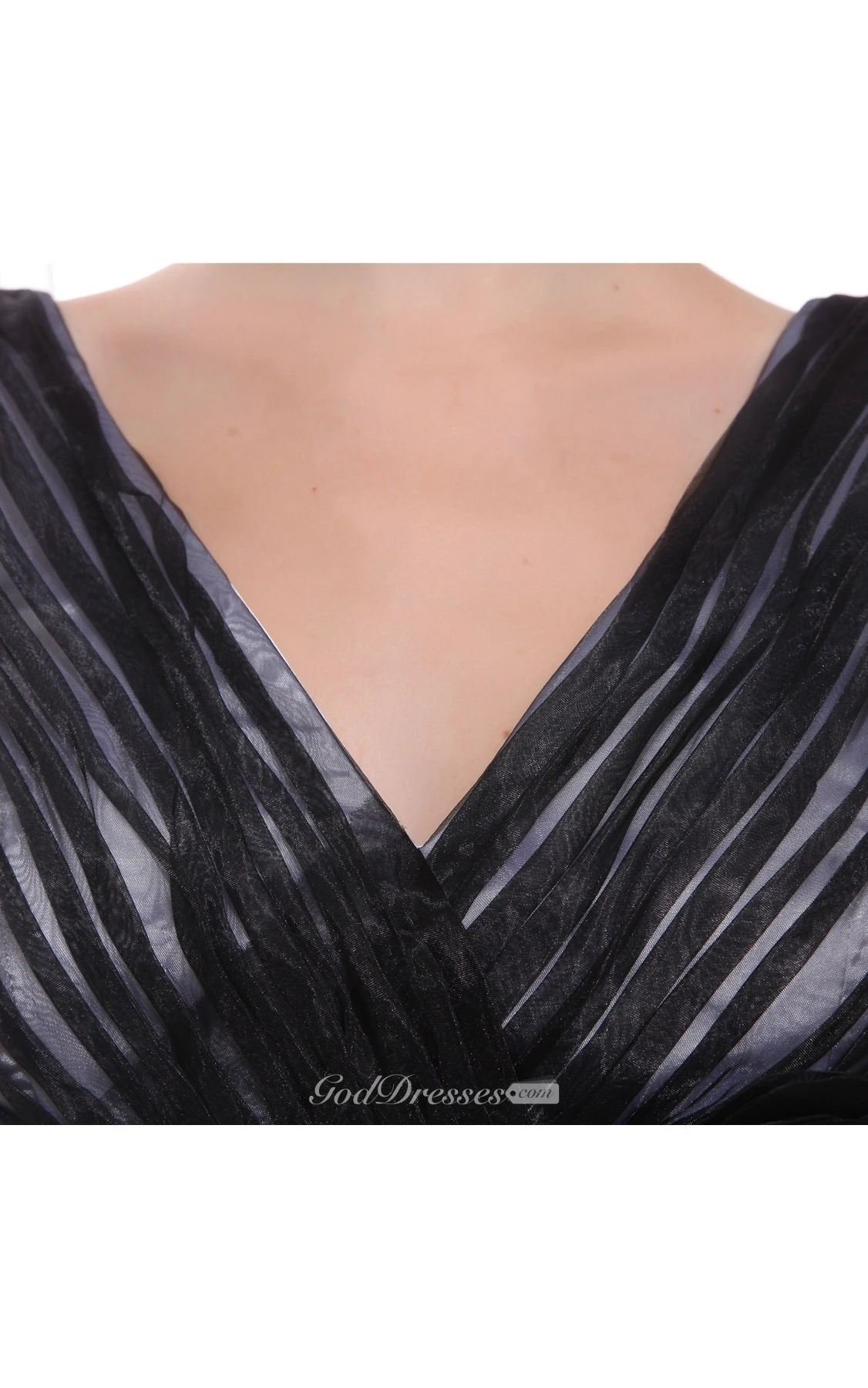 Sleeveless V-Neck A-Line Side Tulle Ruffles Gown With Flowers