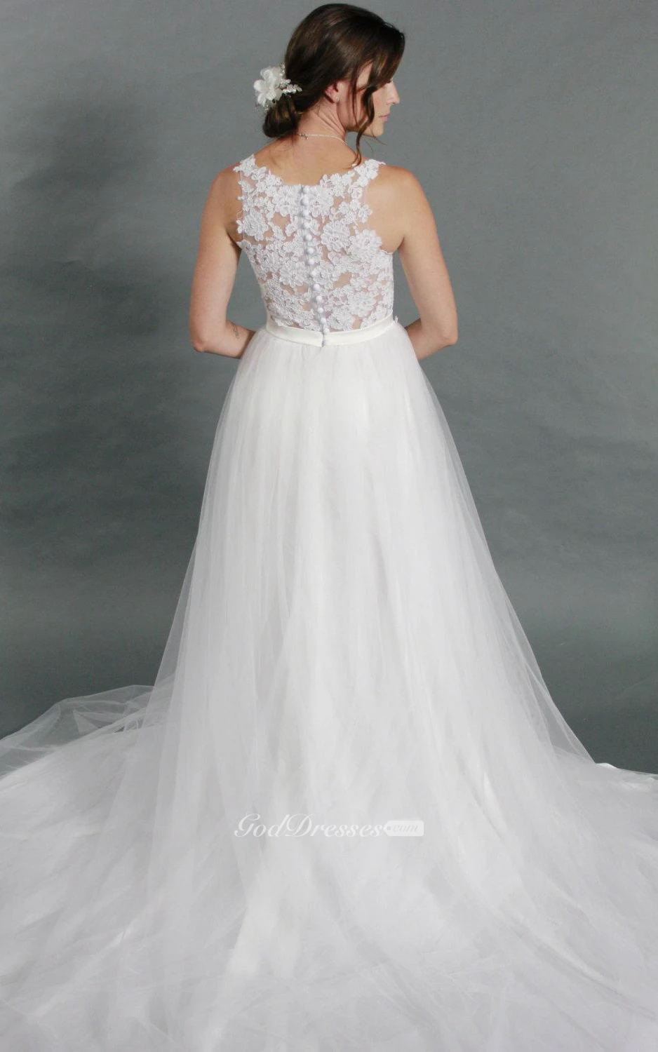 Sleeveless V-Neck A-Line Tulle Dress With Lace Bodice