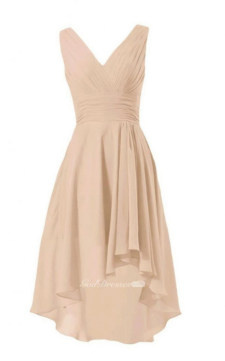 Sleeveless V-neck Asymmetrical Ruched Chiffon Dress