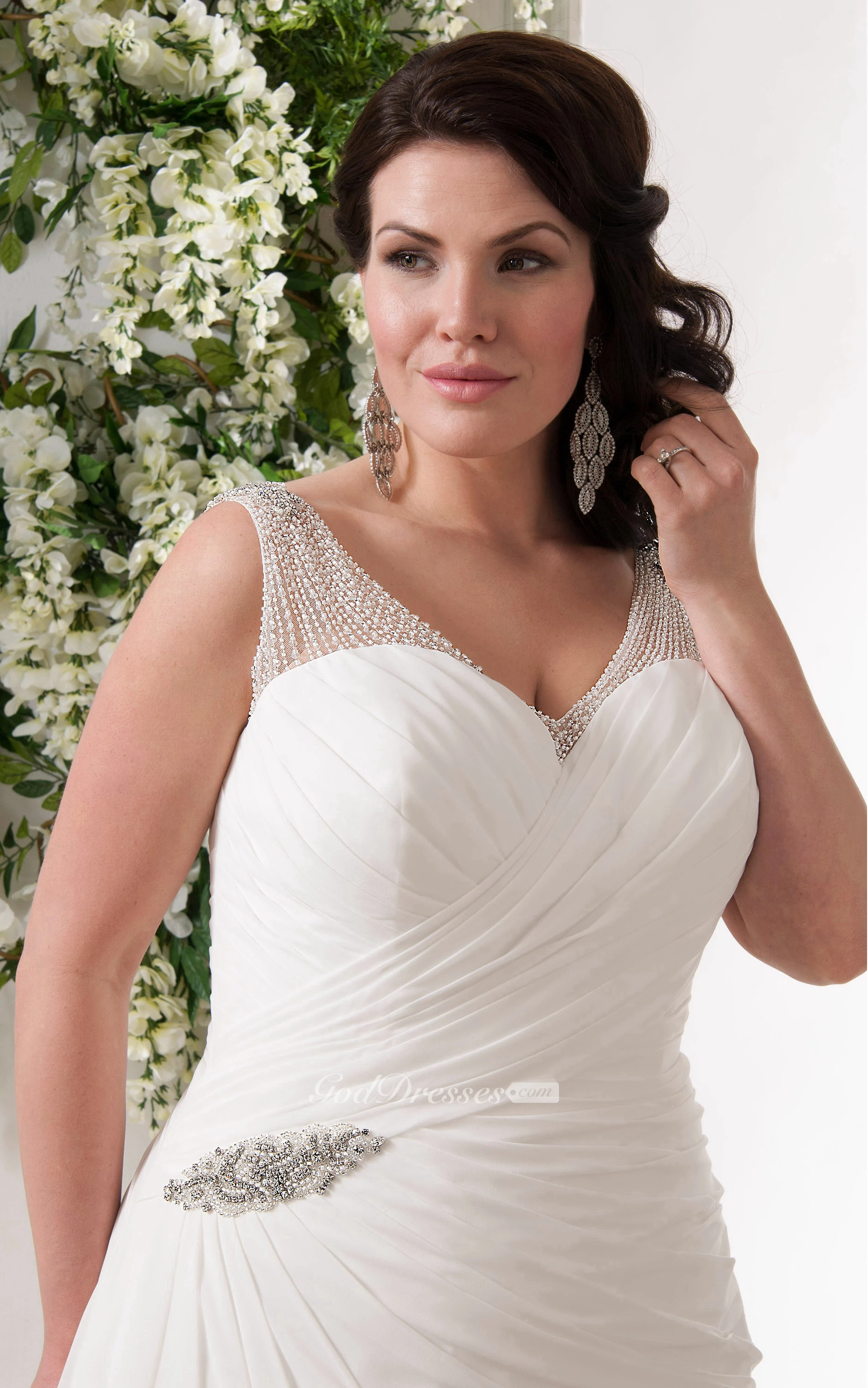 Sleeveless V-Neck Chiffon Dress With Beading And Side Ruching