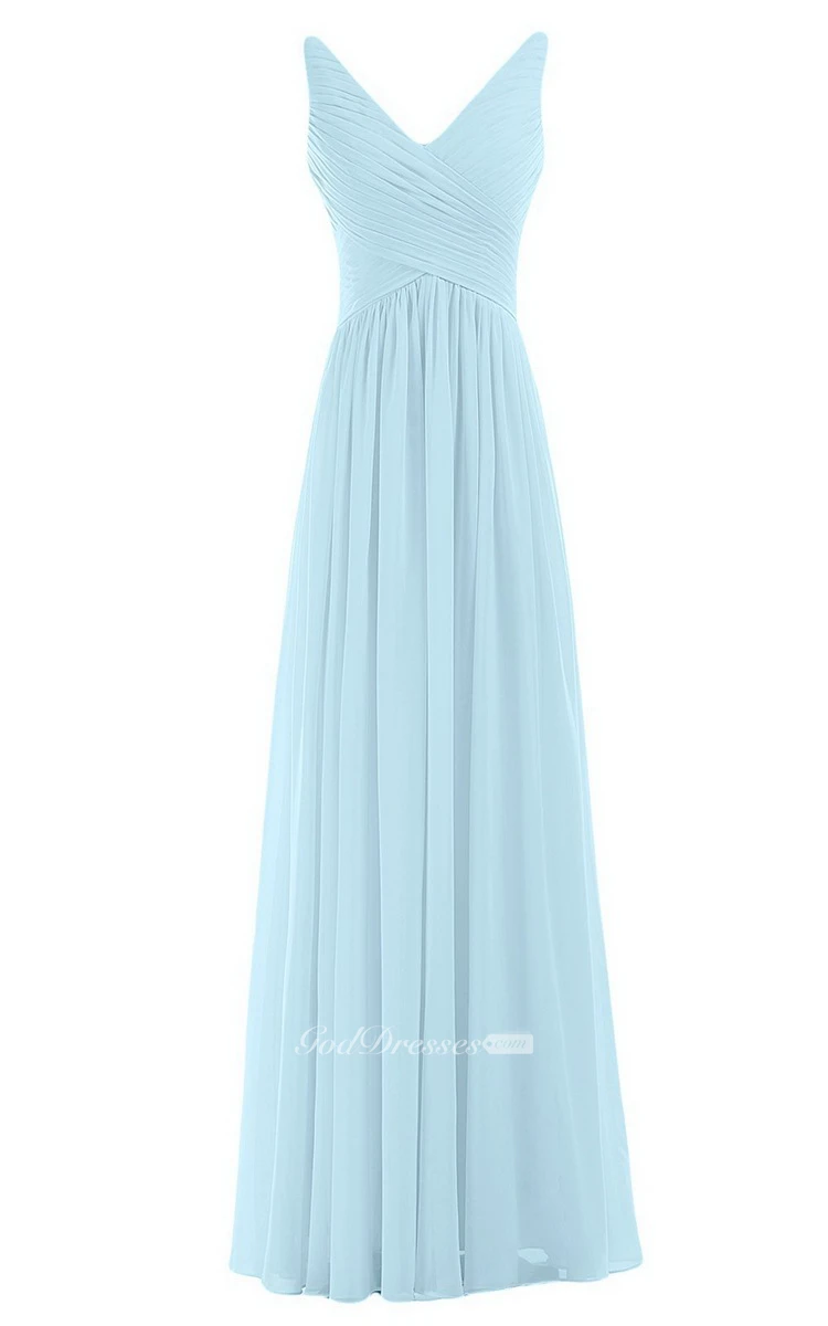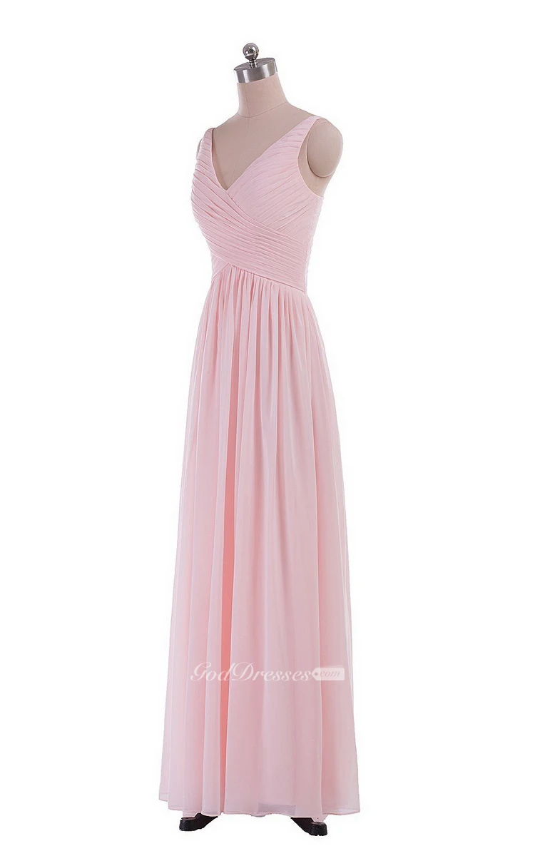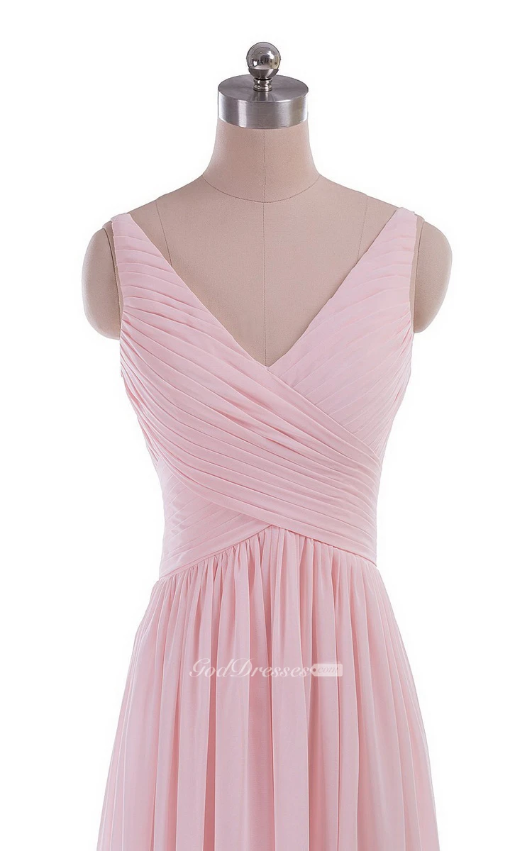 Sleeveless V-neck Chiffon Dress With Crisscross Ruching