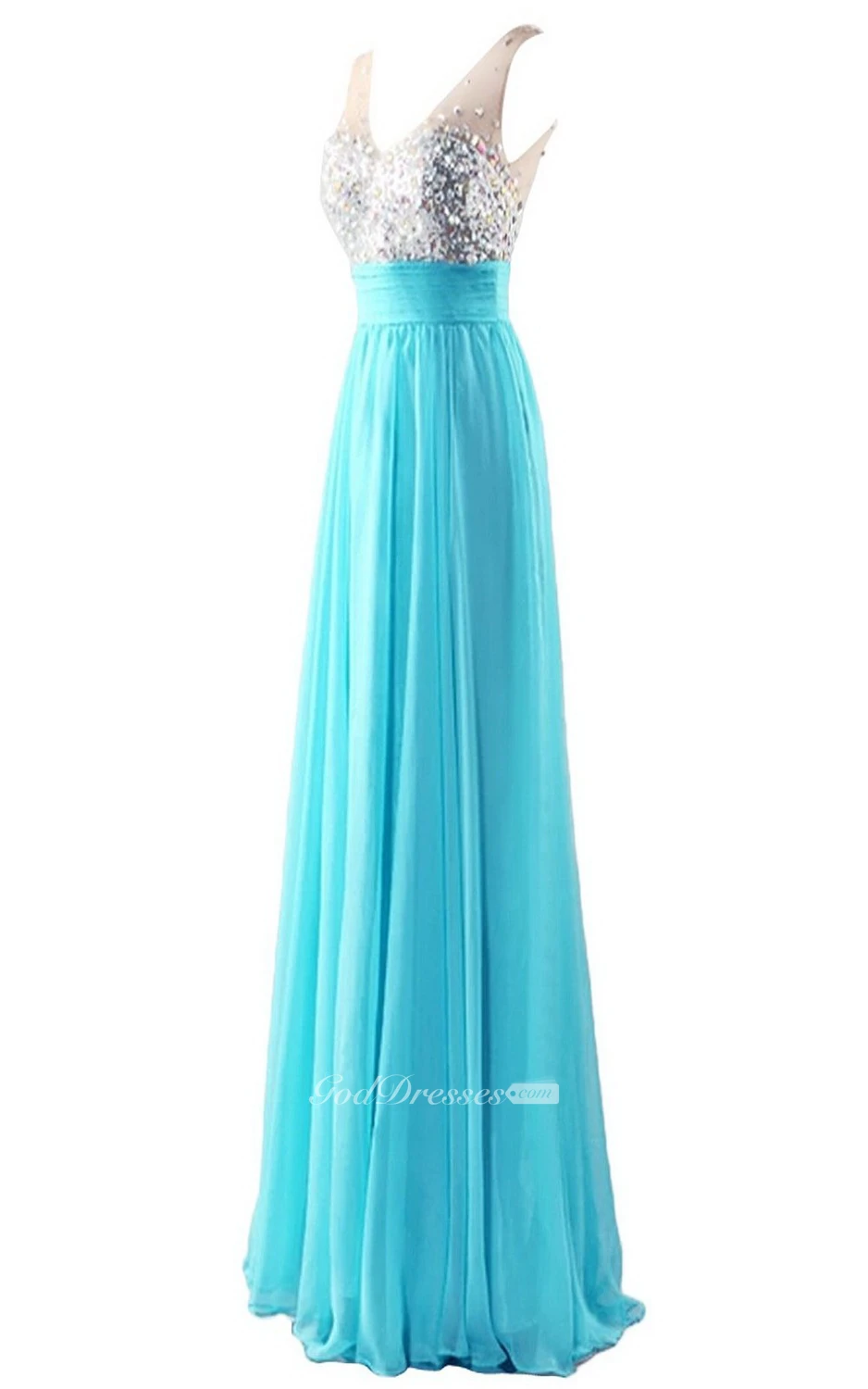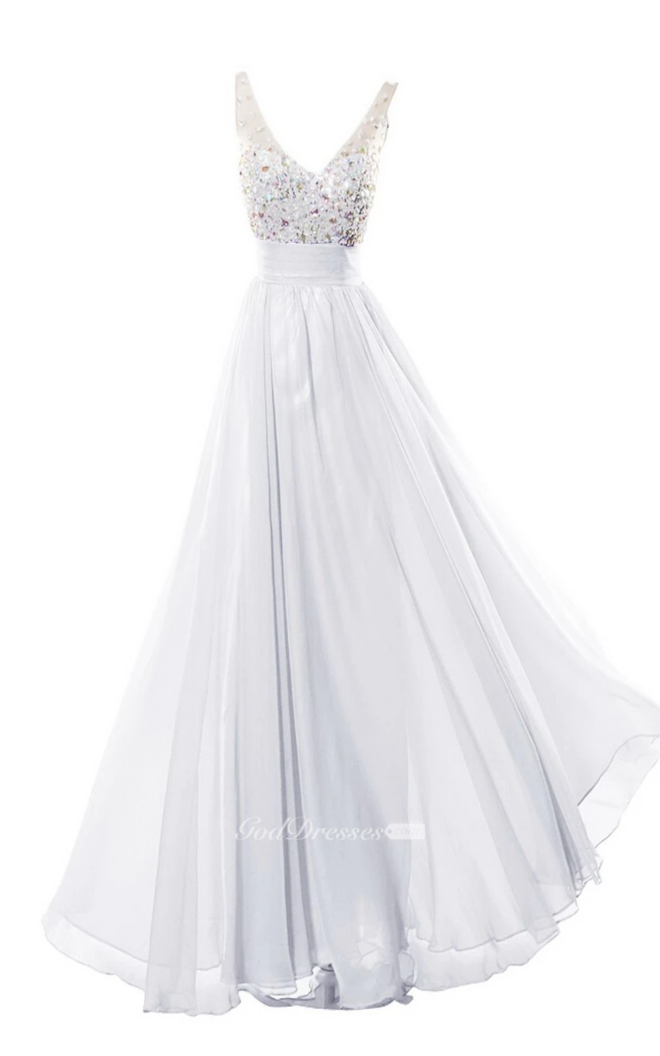 Sleeveless V-neck Crystal Stone Long Layered Chiffon Dress
