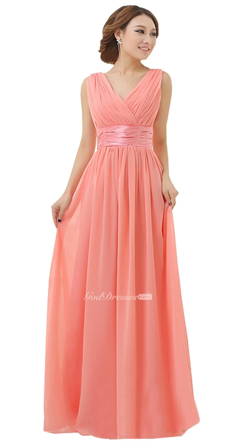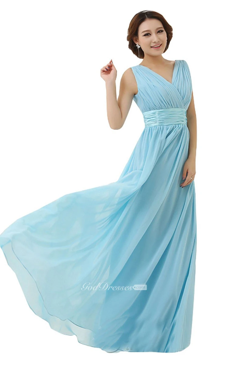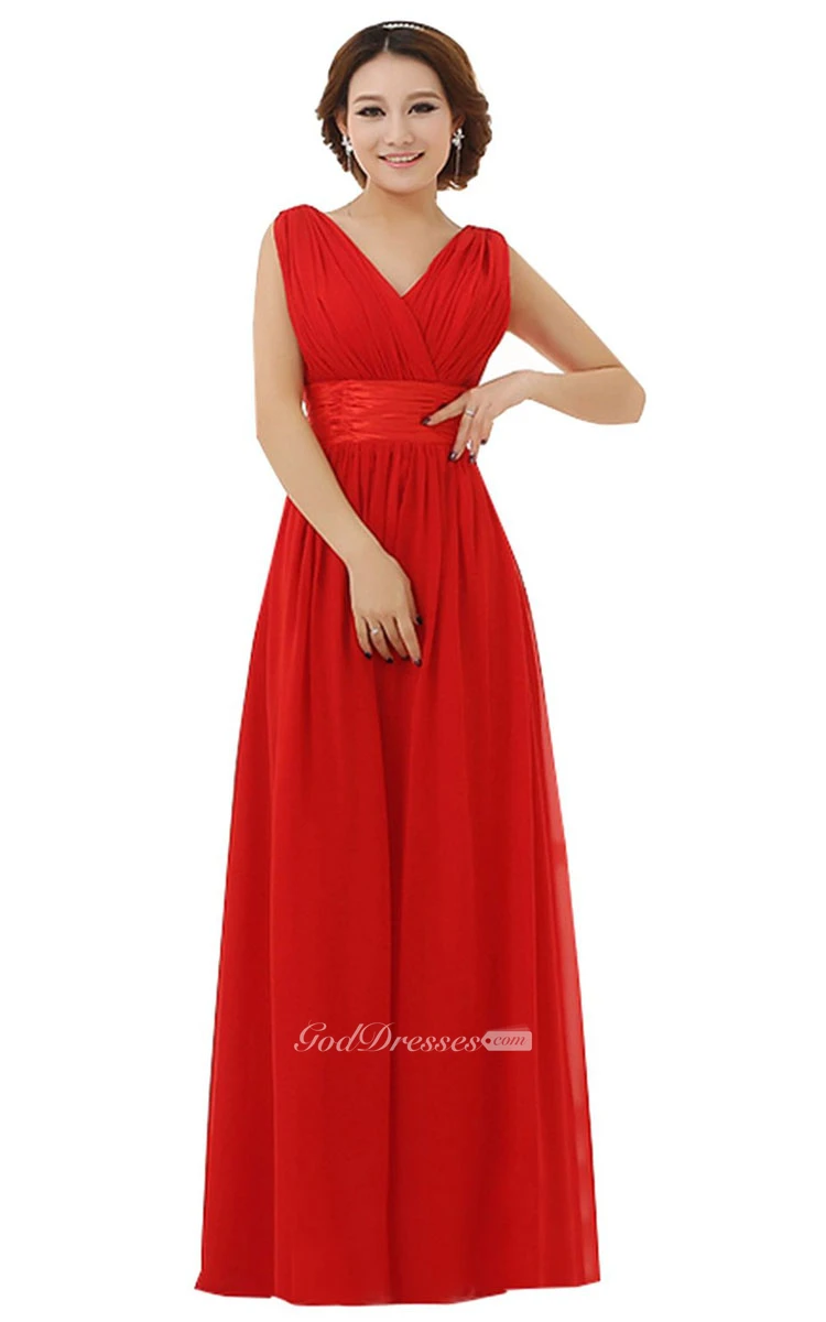 Sleeveless V-neck Empire Chiffon Dress With Pleats