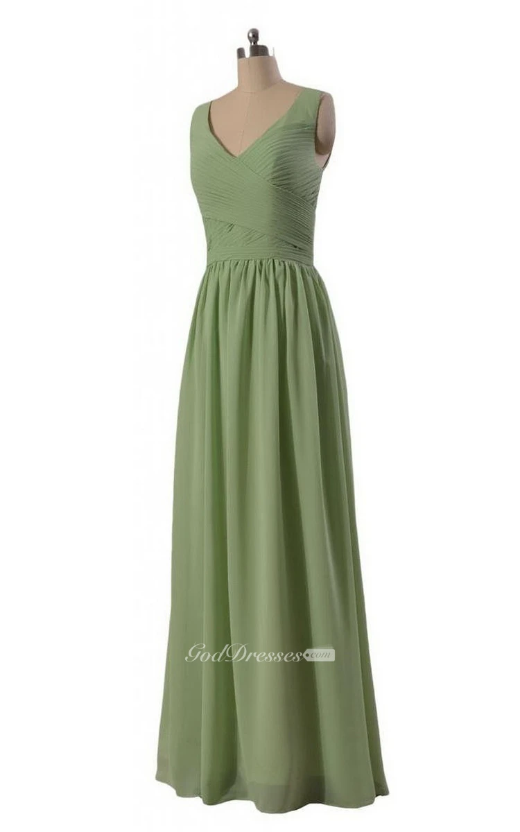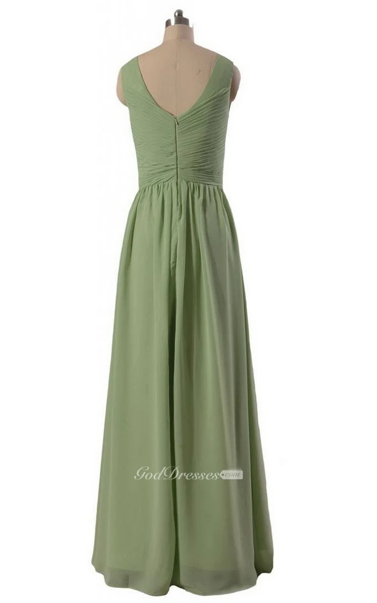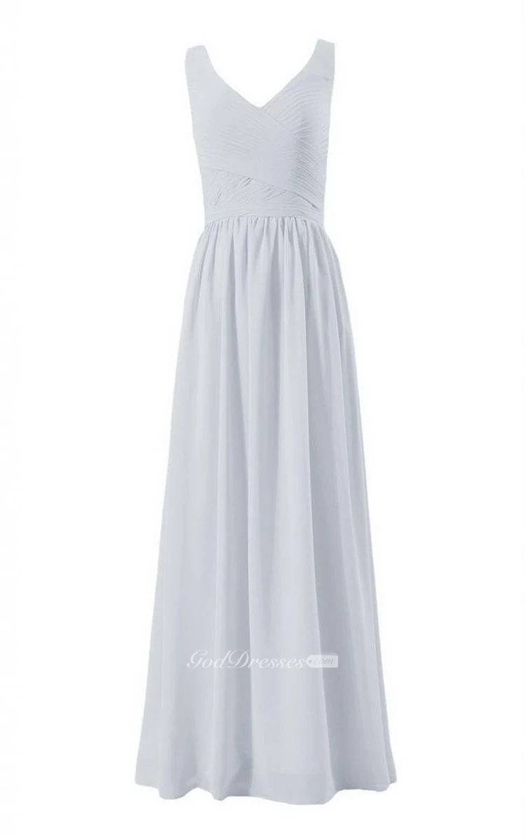 Sleeveless V-neck Long Chiffon Dress With Ruching