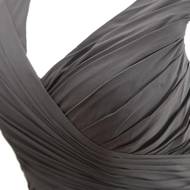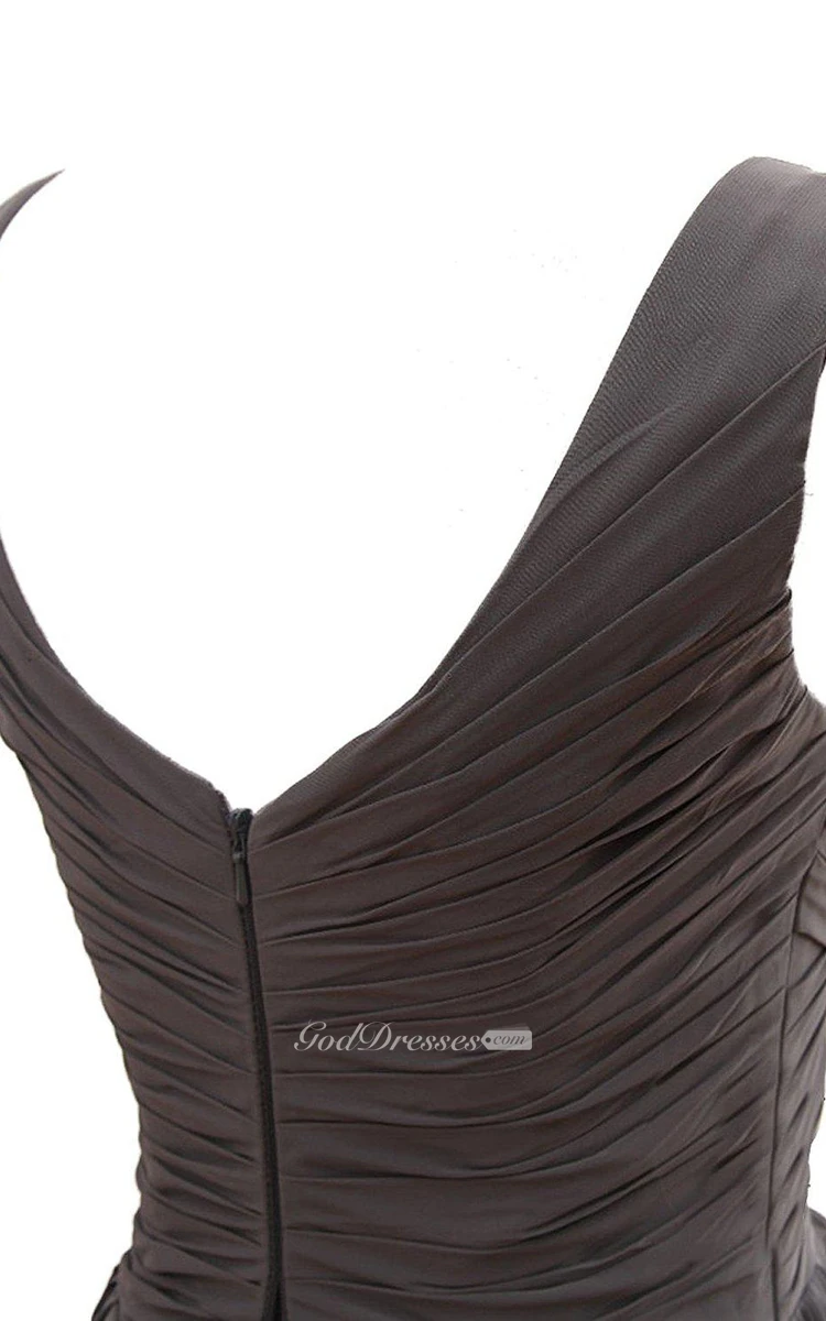Sleeveless V-neck Long Chiffon Gown With Pleats