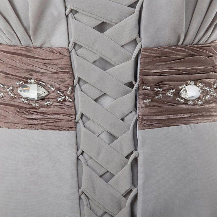 Sleeveless V-neck Long Chiffon Gown With Rhinestone
