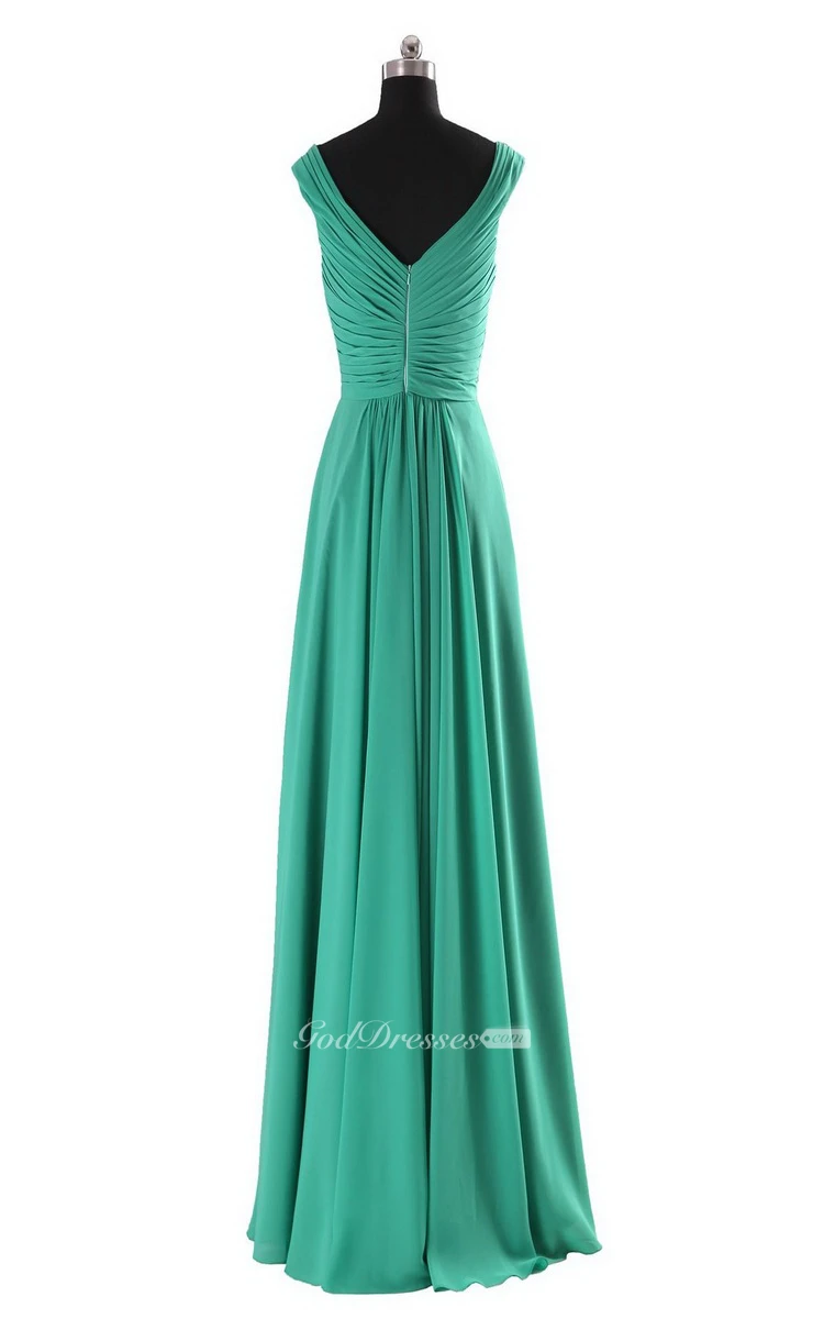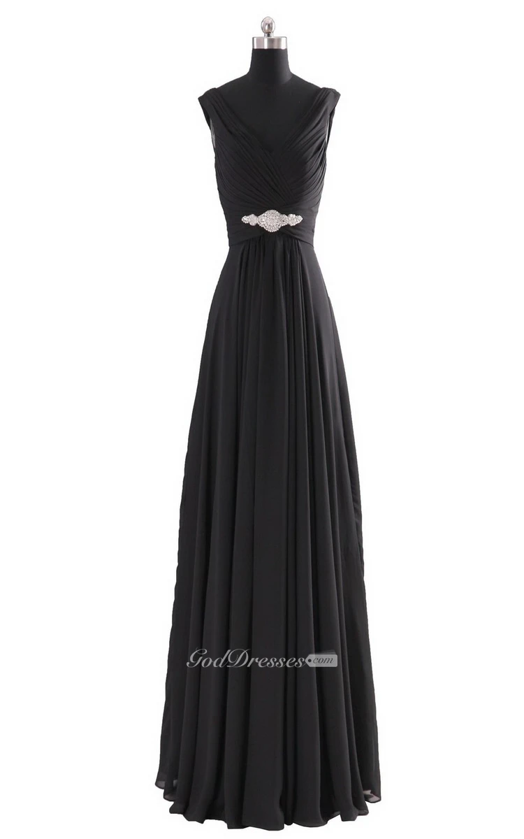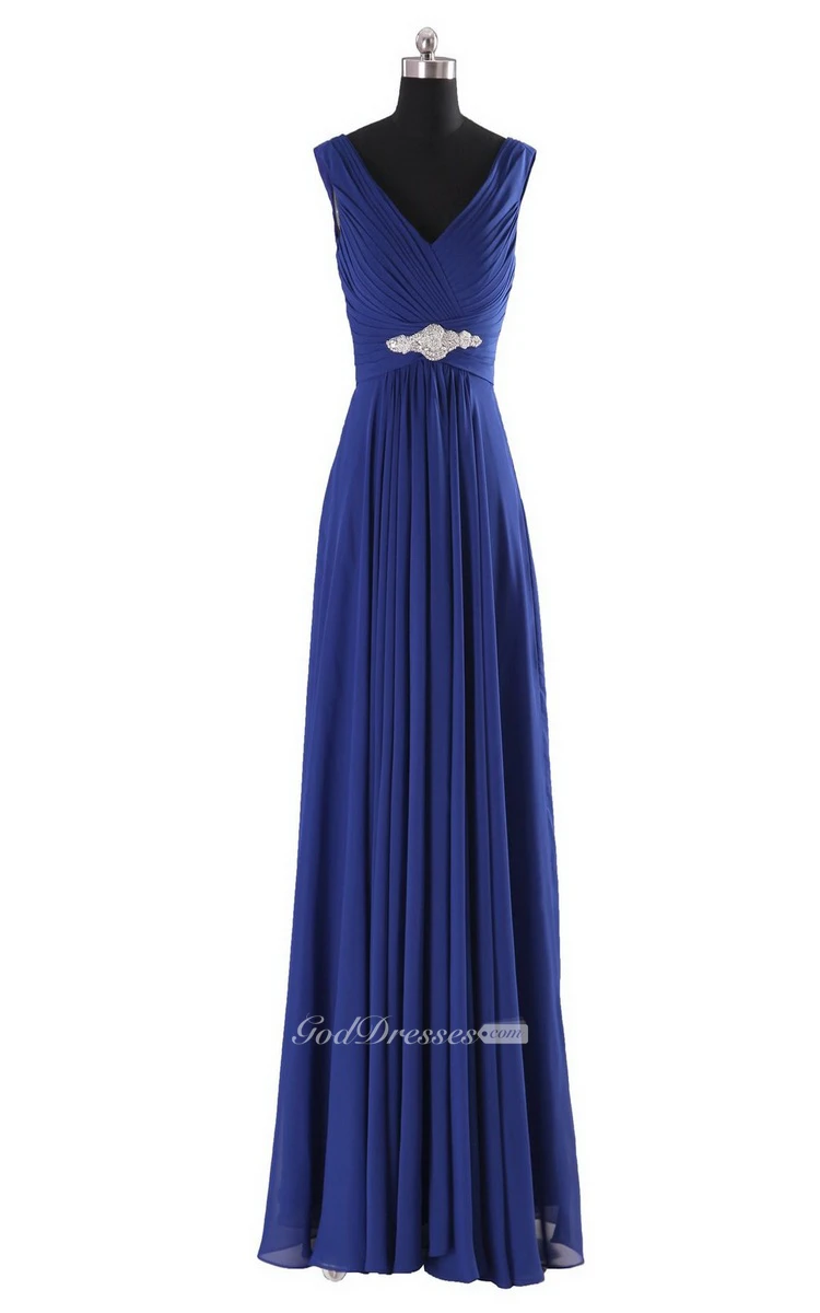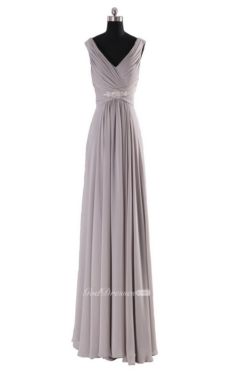 Sleeveless V-neck Long Empire Beaded Chiffon Dress