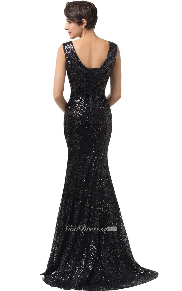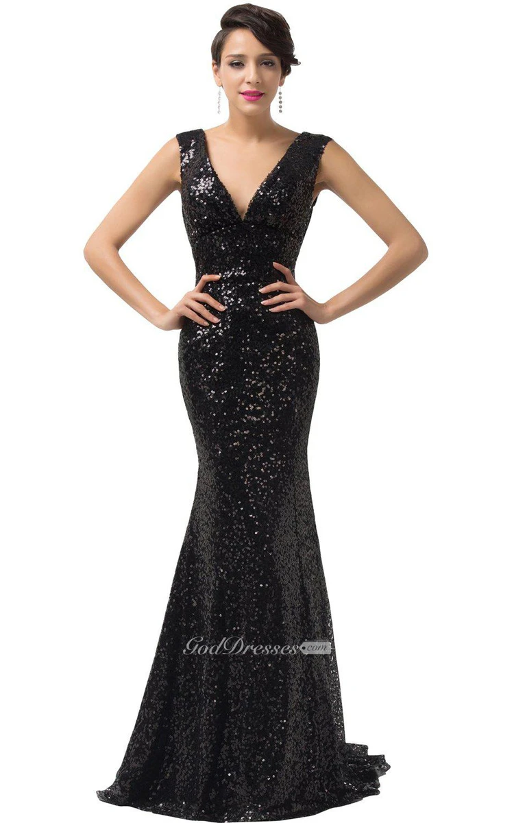 Sleeveless V-neck Mermaid Gown With Allover Sequins