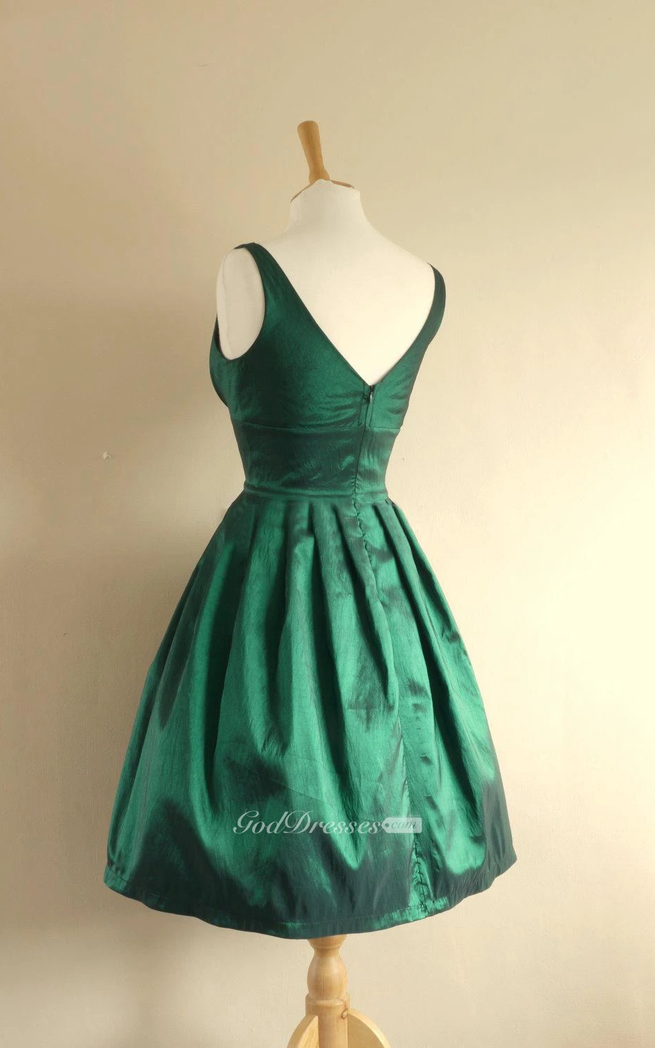 Sleeveless V-neck Mini Taffeta Dress with V-back