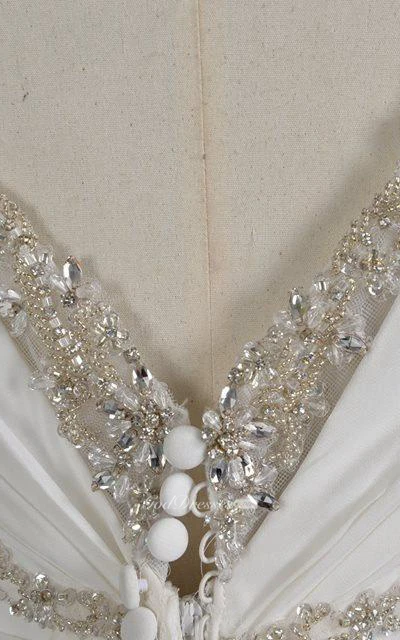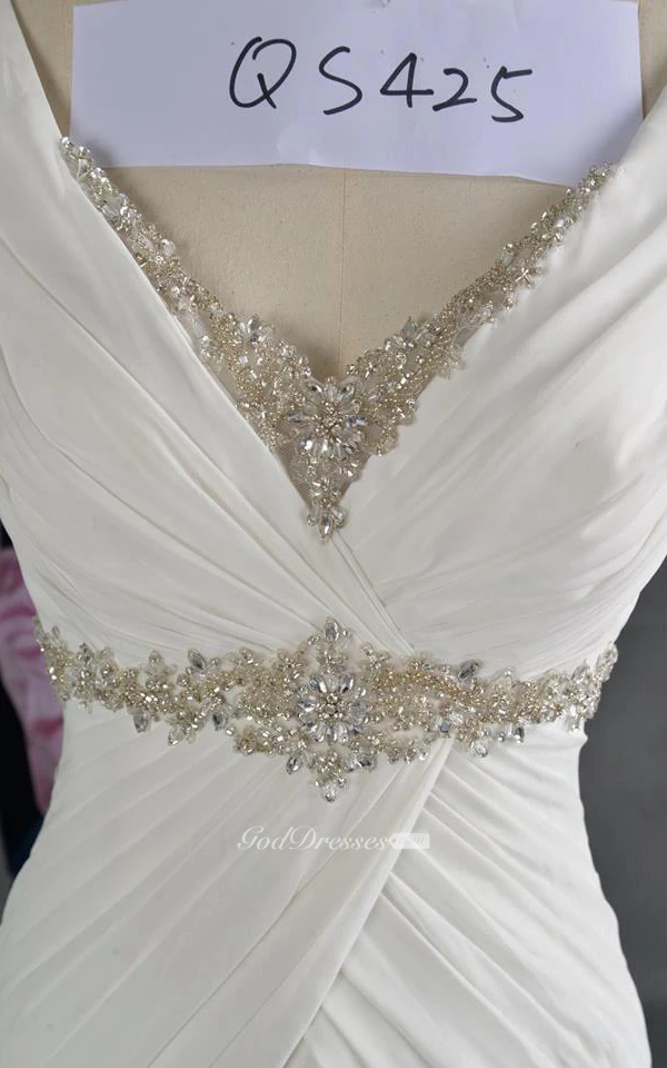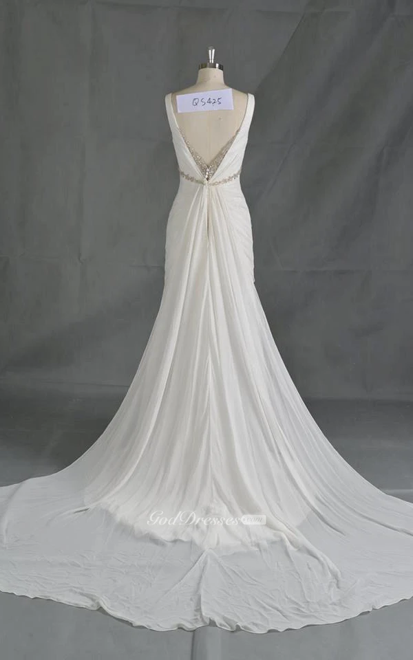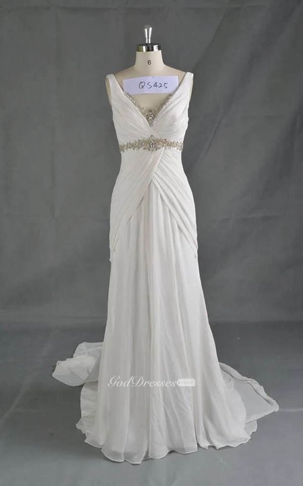 Sleeveless V-Neck Pleated Chiffon A-Line Dress With Crystal Detailing