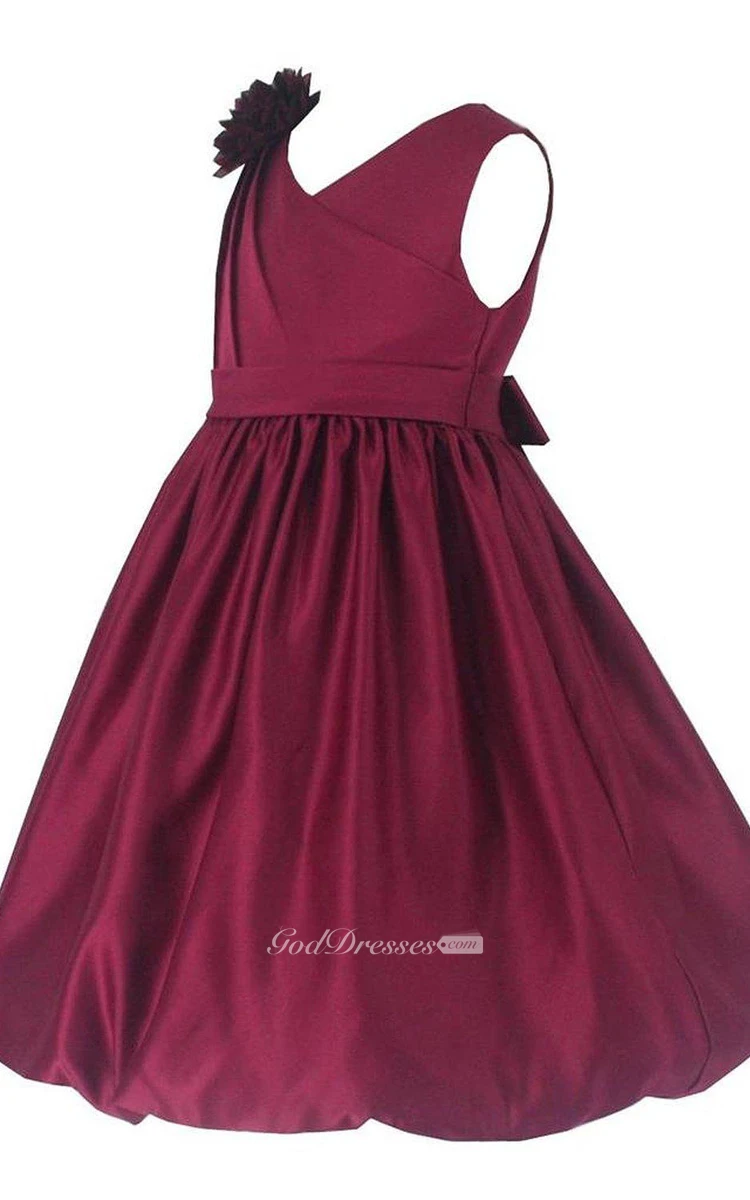 Sleeveless V-neck Pleated Dress With Flower and Bow