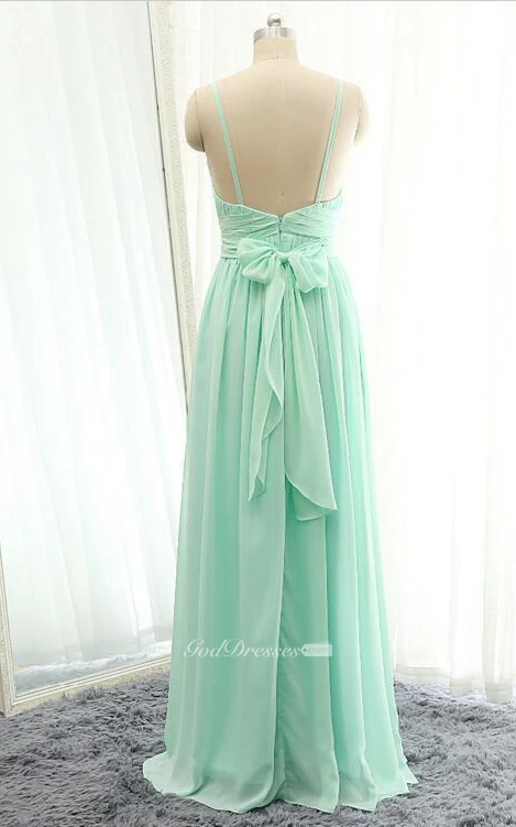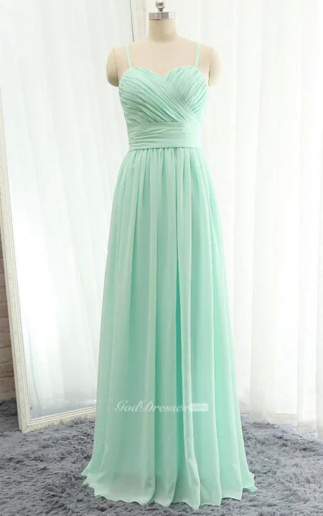Sleevless A-line Floor-length Dress with Spaghetti Straps