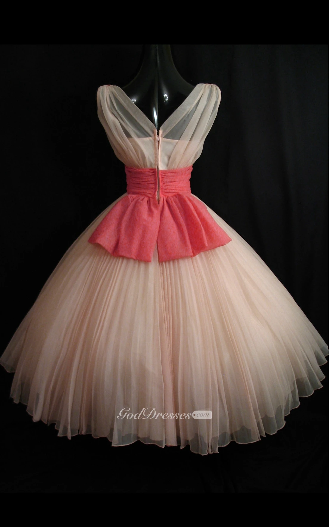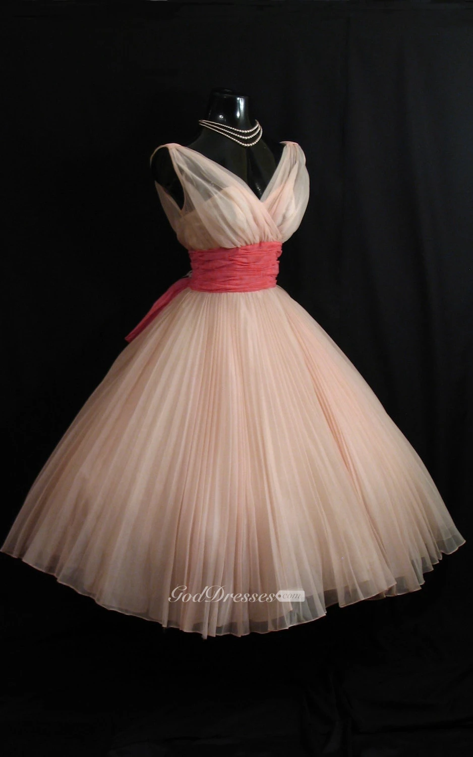 Sleveless V Neck Empire Chiffon Dress With Ruched Waist and Pleats