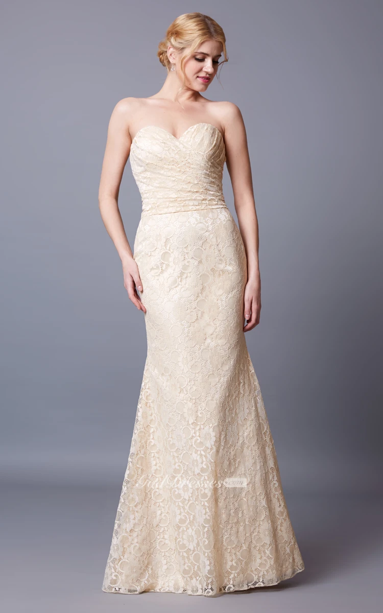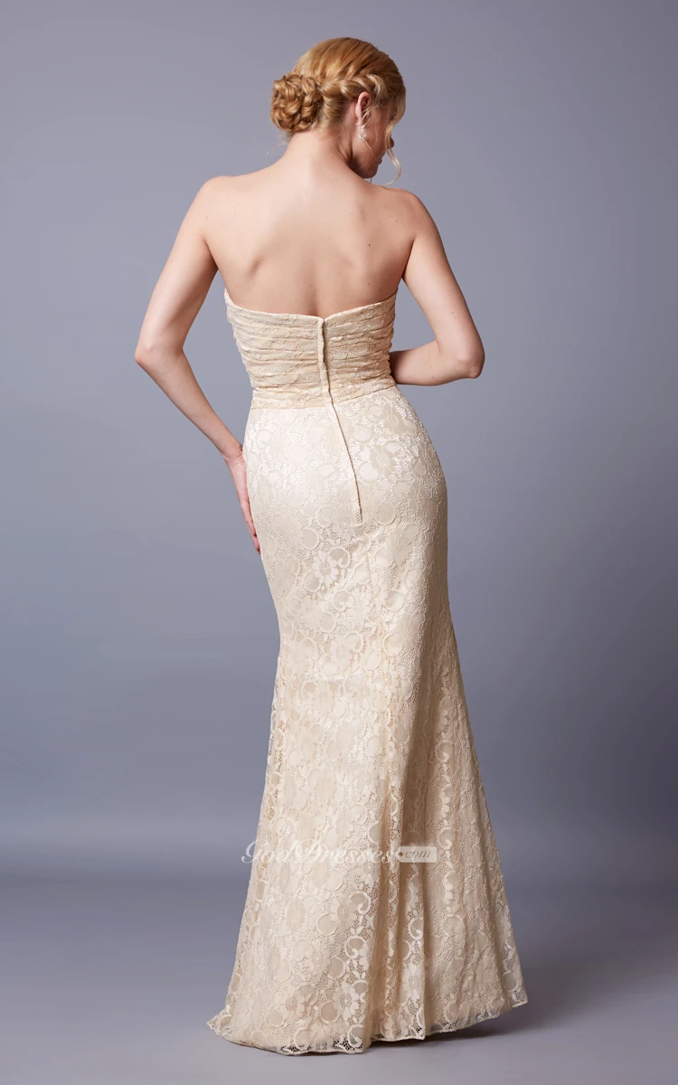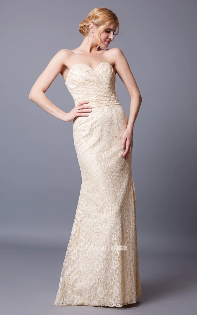 Slinky Sleeveless Sweetheart Lace Gown With Backless