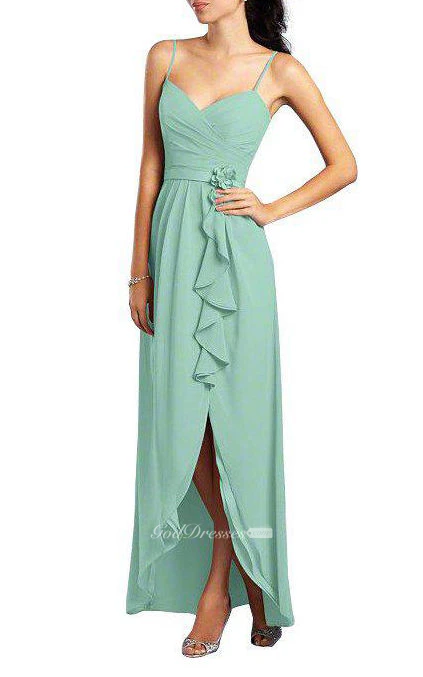 Spagetti Straps Chiffon Dress with Drapping and Front Split