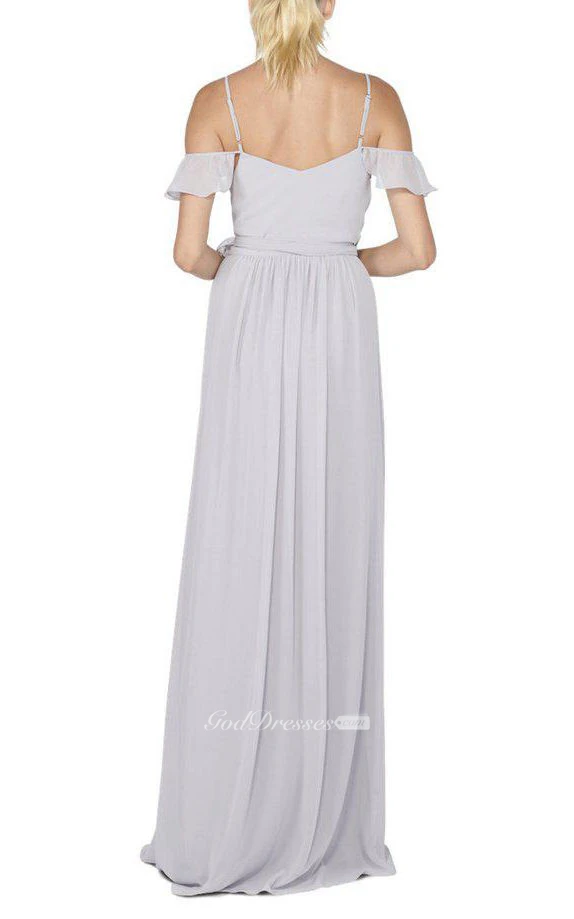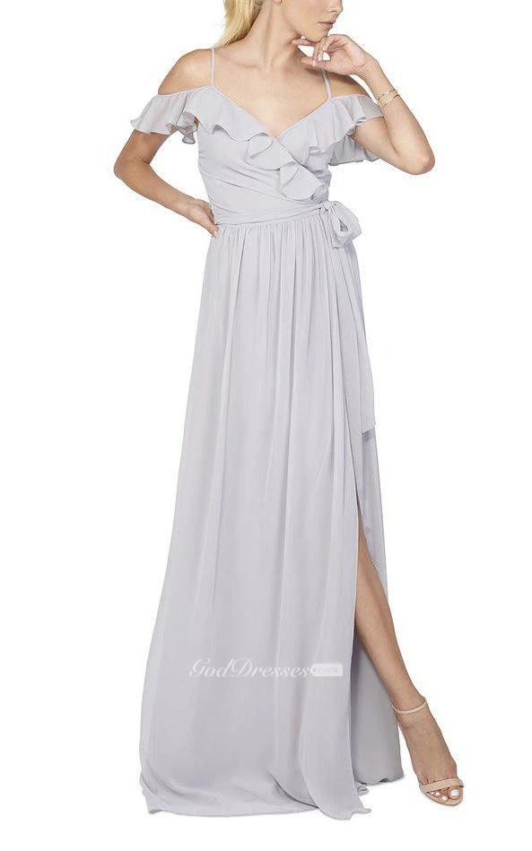 Spagetti Straps Falbala Off-the-shoulder Wrap Chiffon Dress