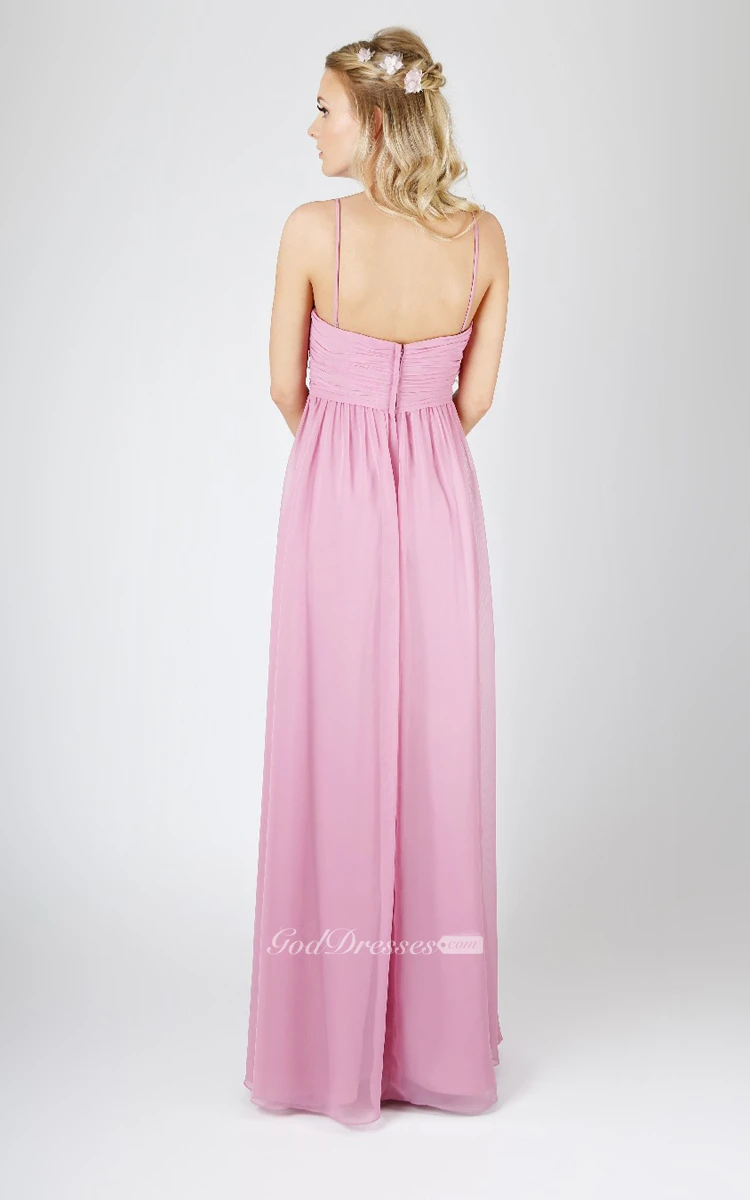 Spaghetti A-Line Straps Gown With Waist Gathered Bandage