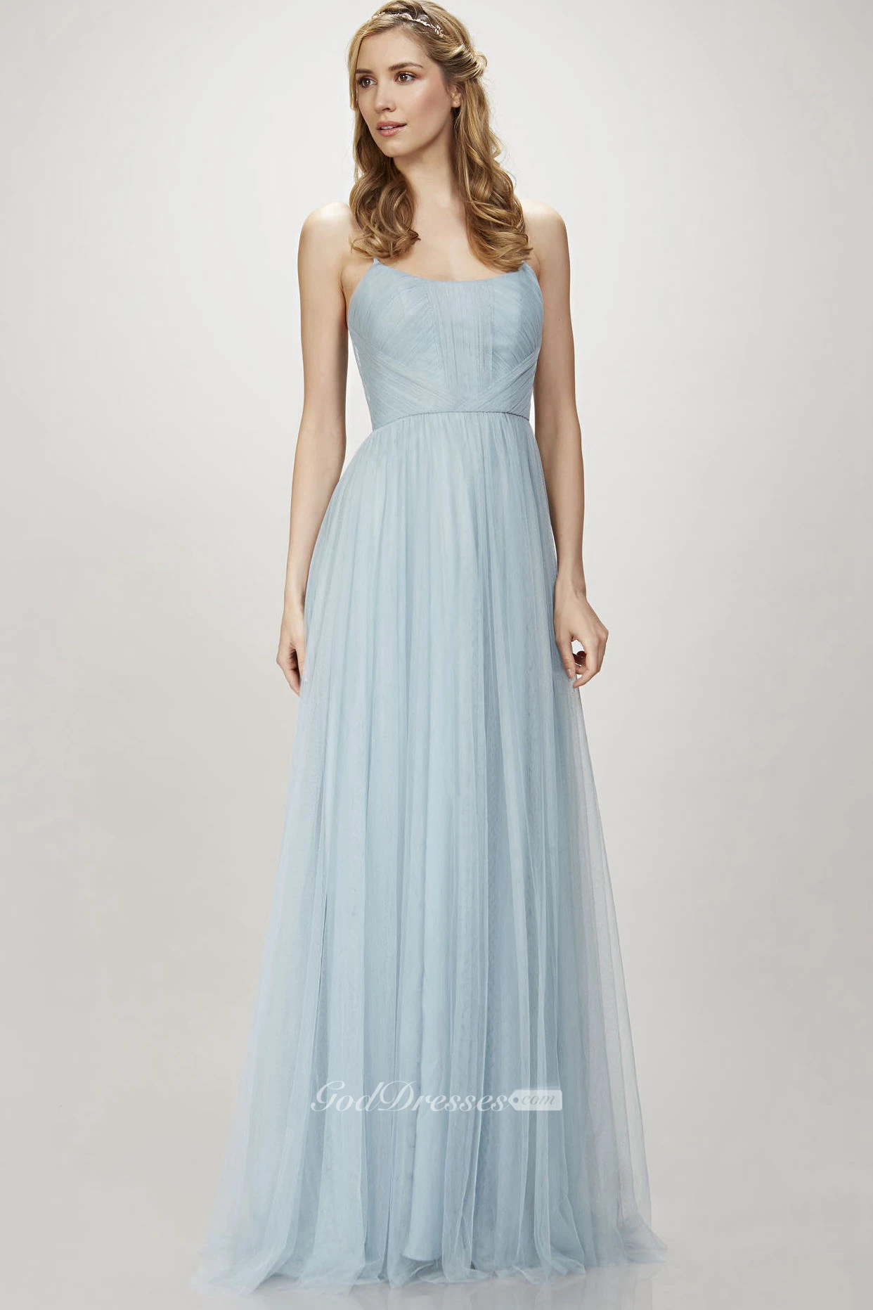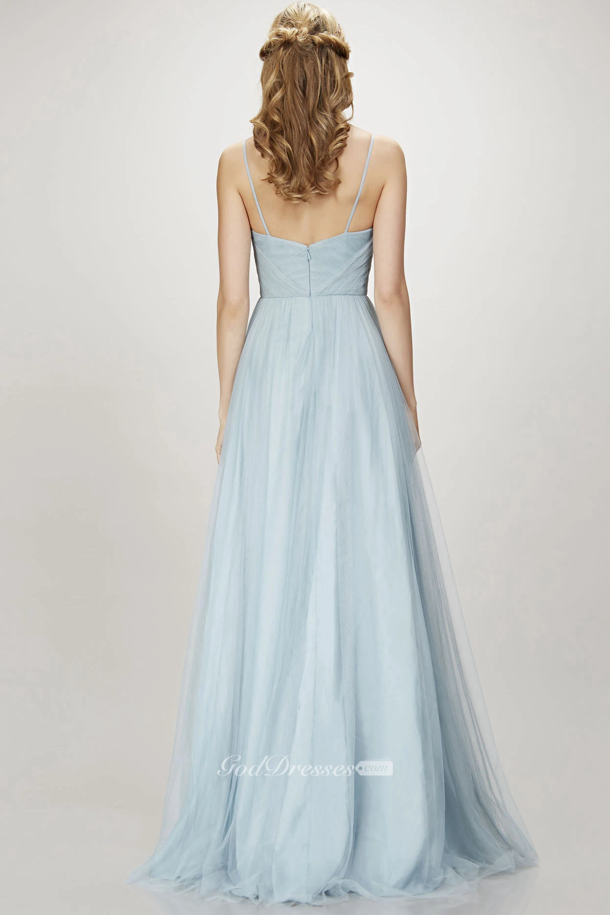 Spaghetti Ruched Sleeveless Tulle Bridesmaid Dress