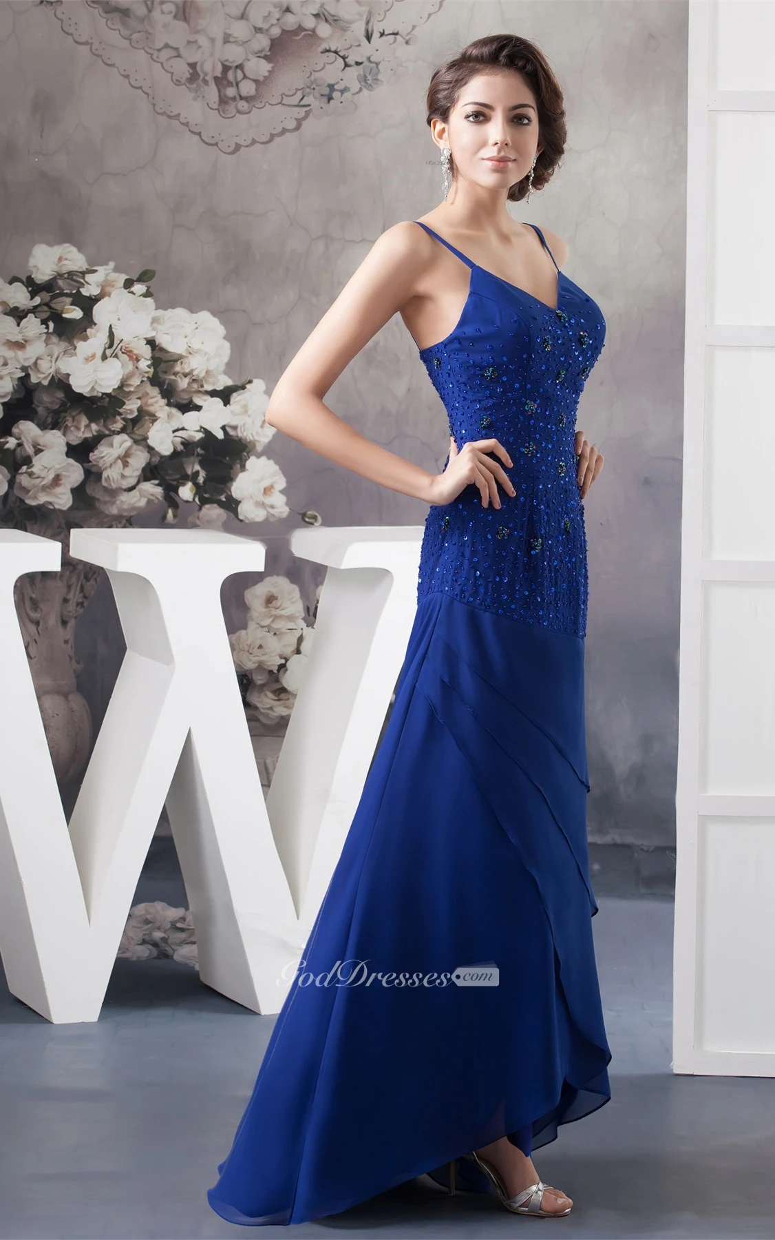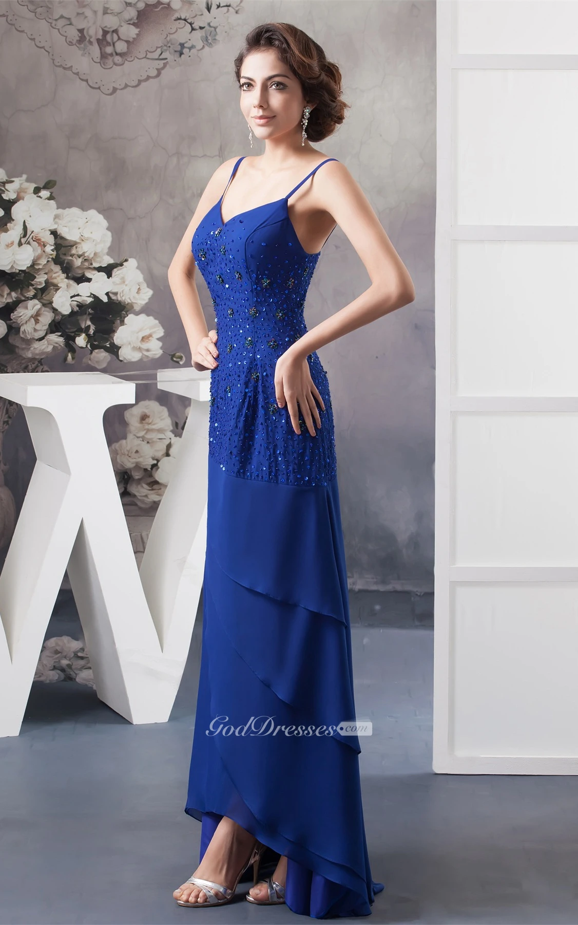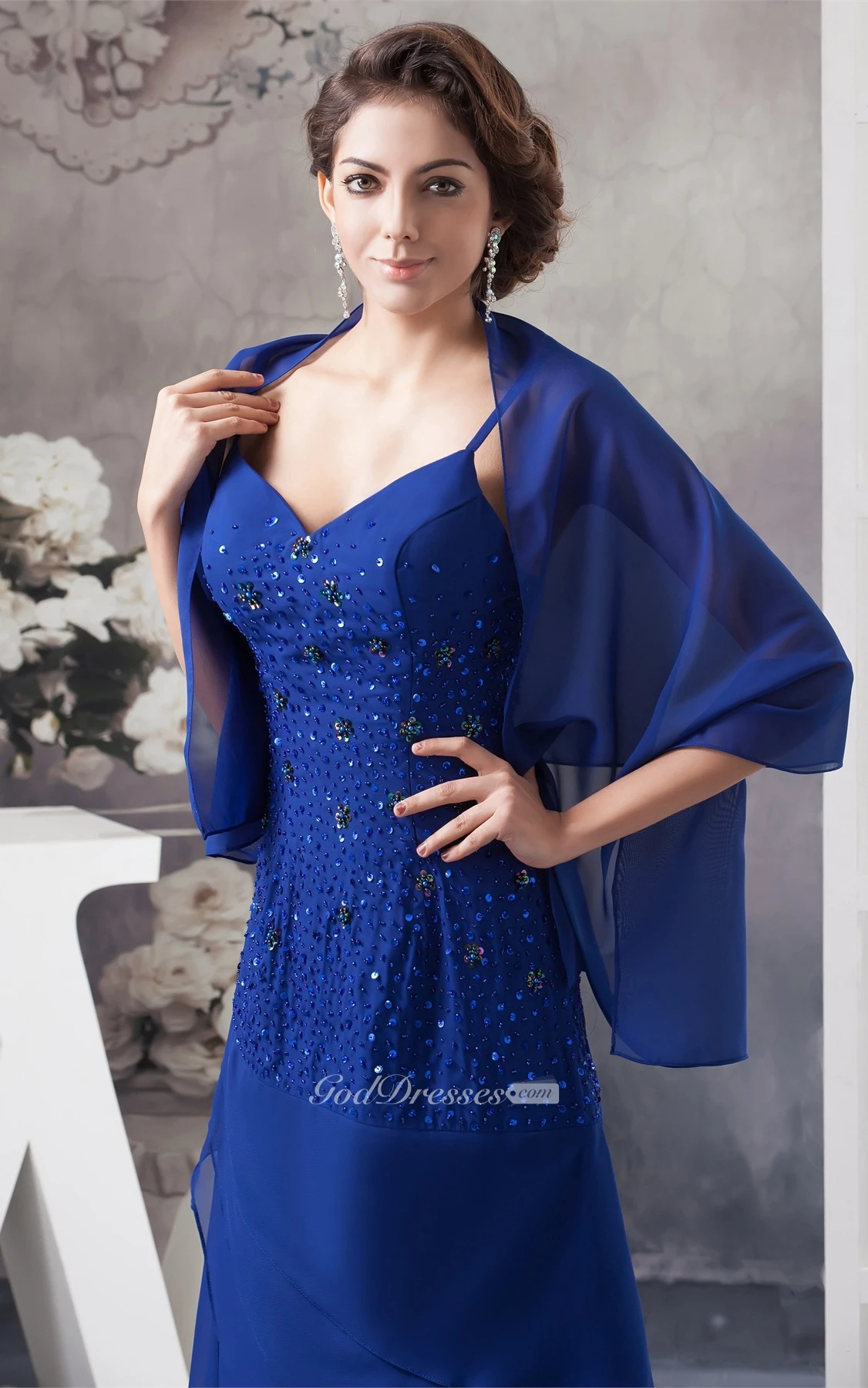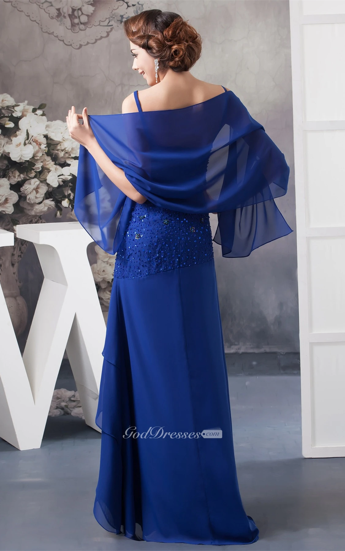 Spaghetti-Strap Floor-Length Chiffon Wrap and Dress With Beading