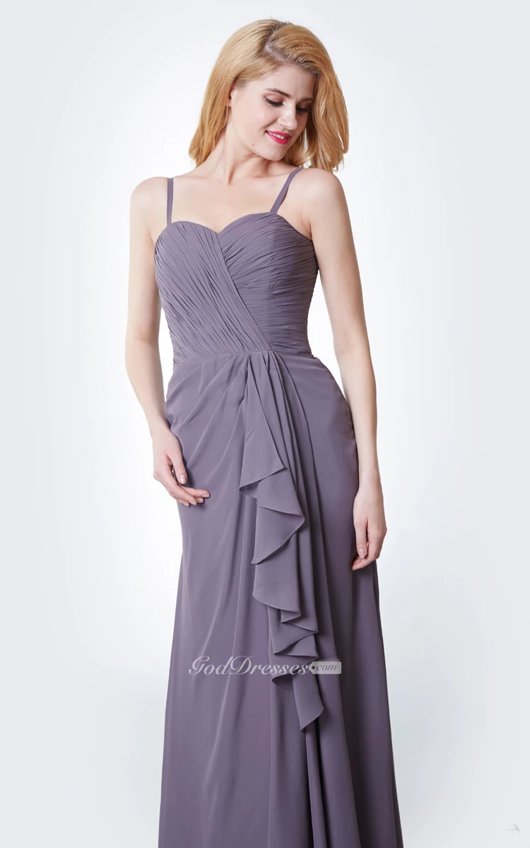 Spaghetti Strap Ruched Long Chiffon Dress With Side Split