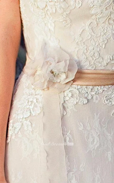 Spaghetti Strapped Bell Sleeve Chiffon Lace Dress With Beading Tiers