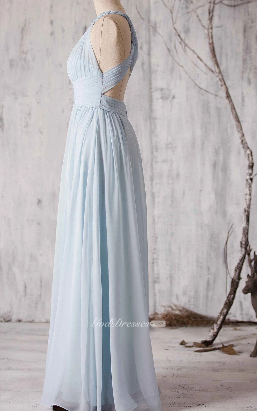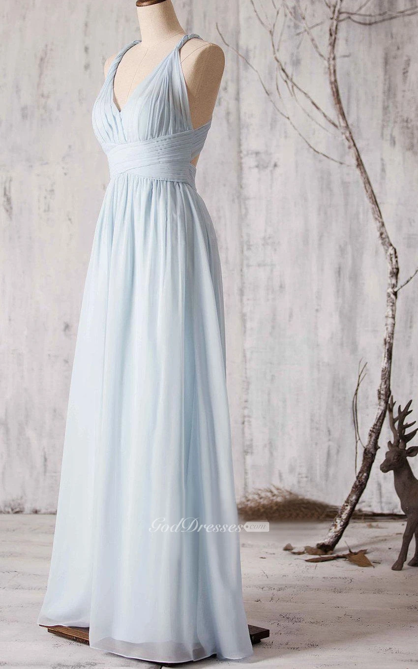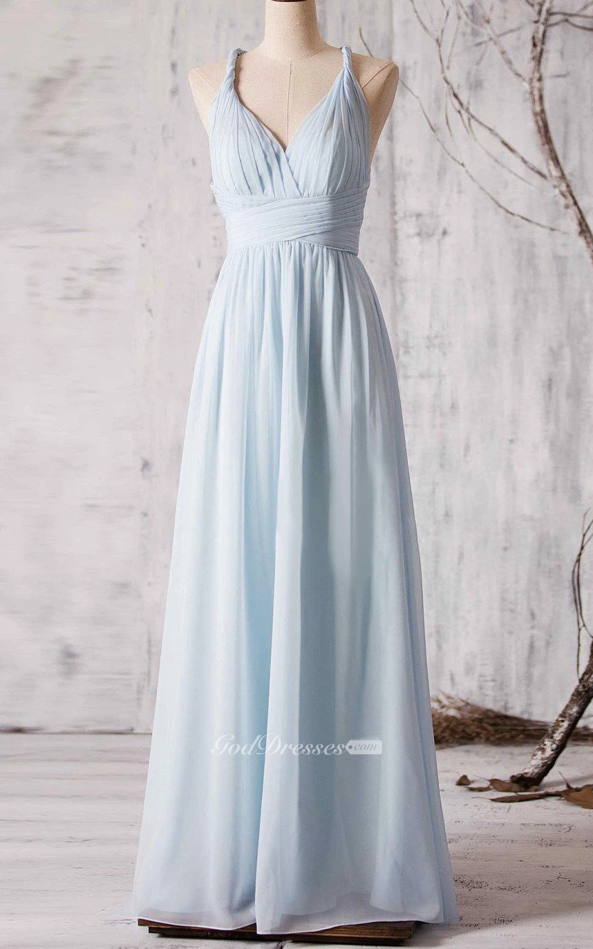 Spaghetti Straps Allover Pleated A-line Chiffon Long Dress Criss-cross Back
