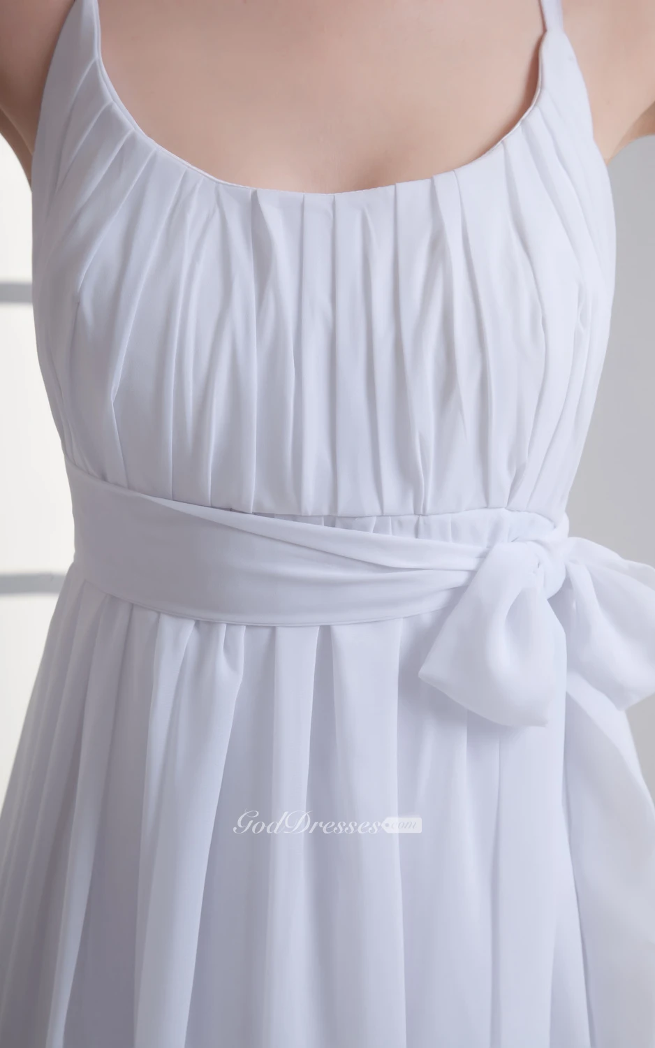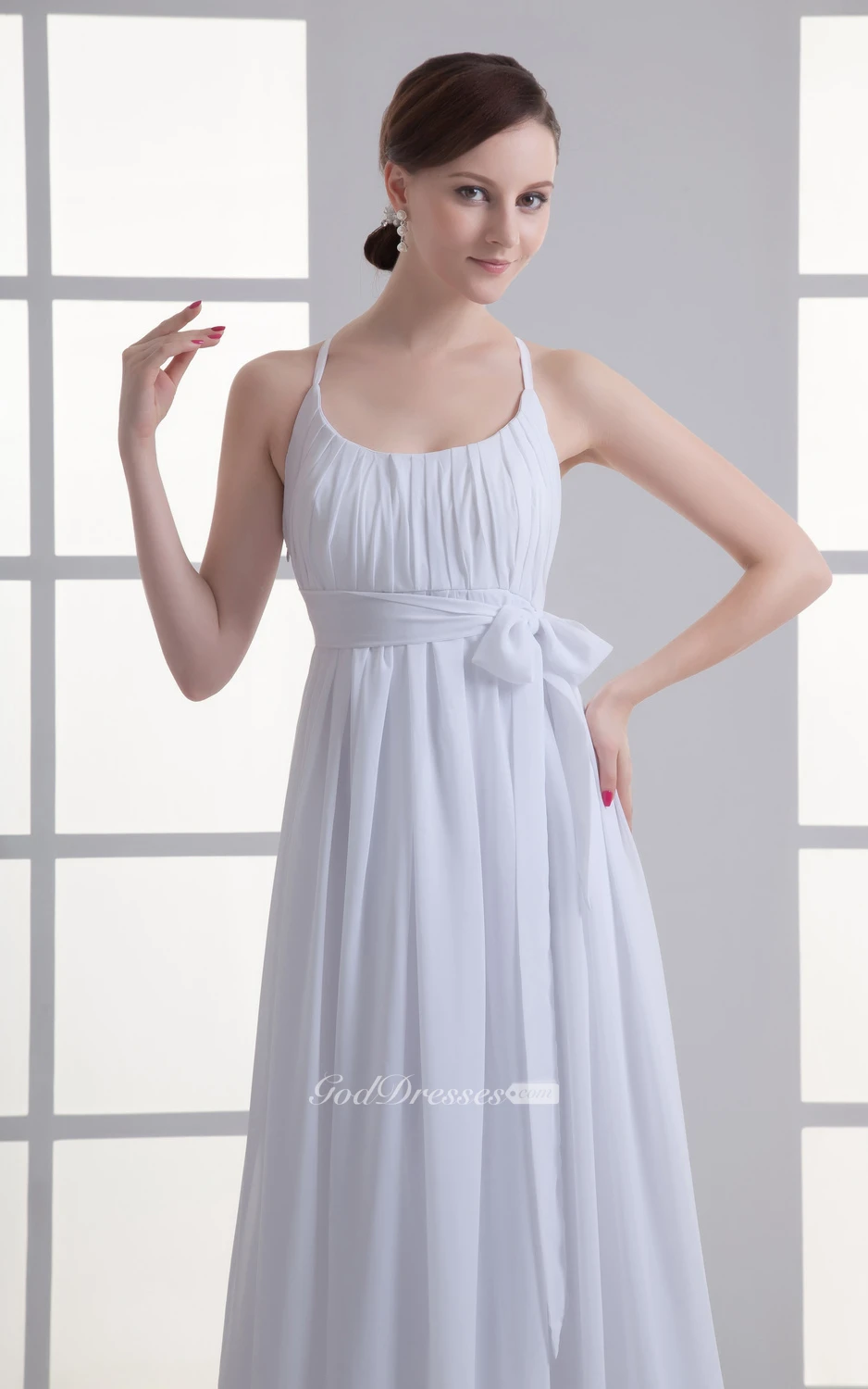 Spaghetti Straps Embroideries Dress With Chiffon Pleating