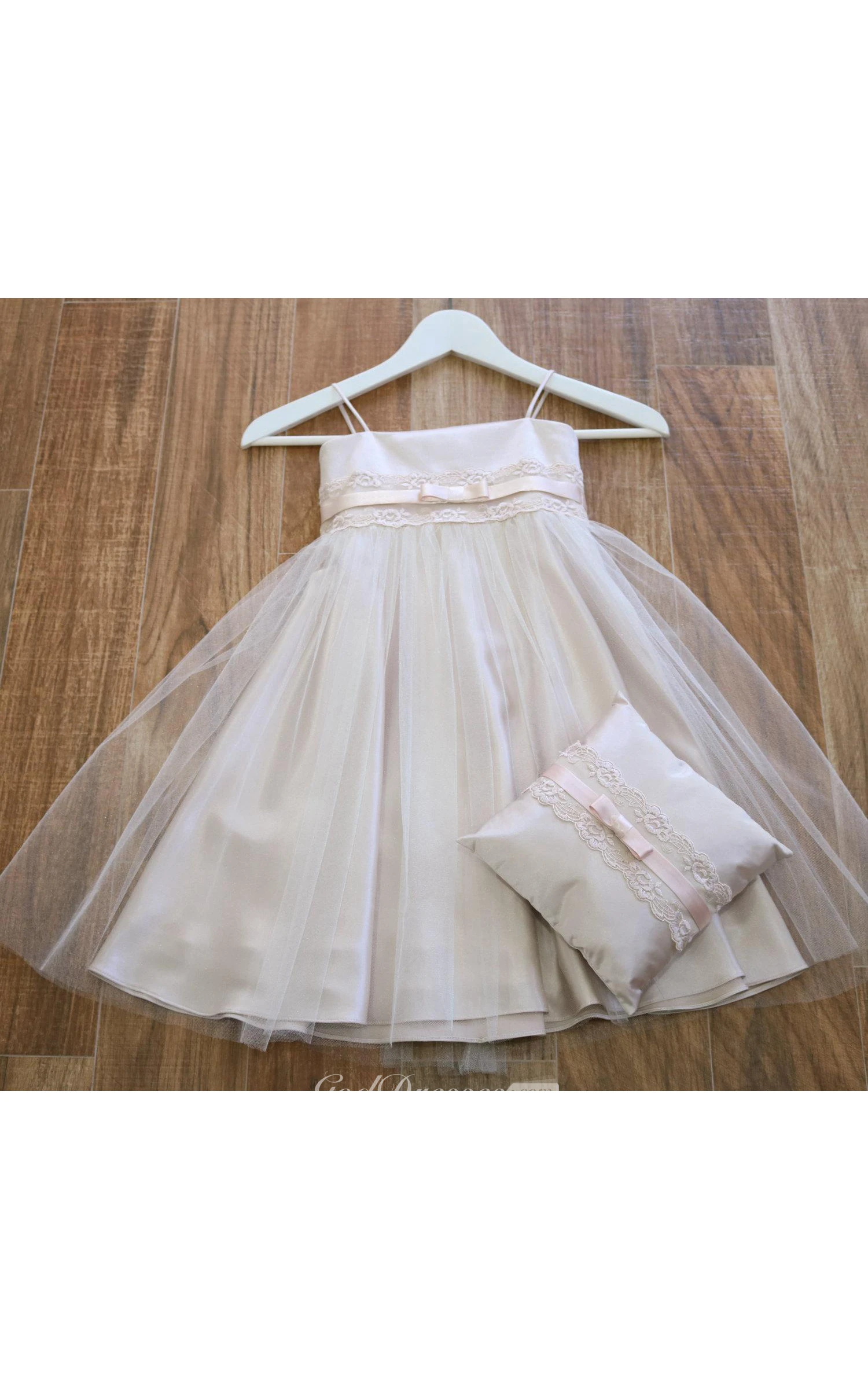 Spaghetti Straps Empire Tulle Ball Gown With Lace and Satin Sash