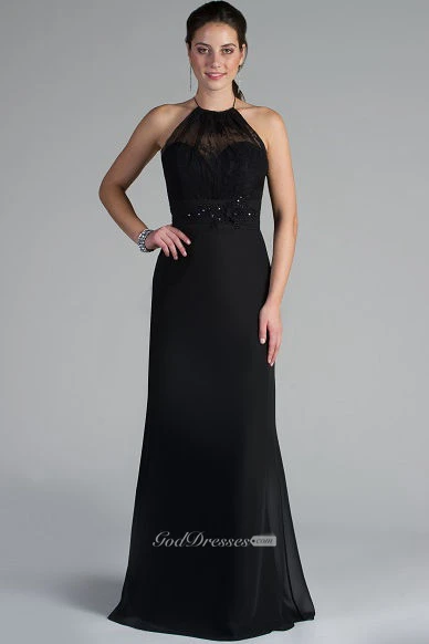 Spaghetti Straps High Neck Chiffon Long Mother Of The Bride Dress With Crystal And Beading