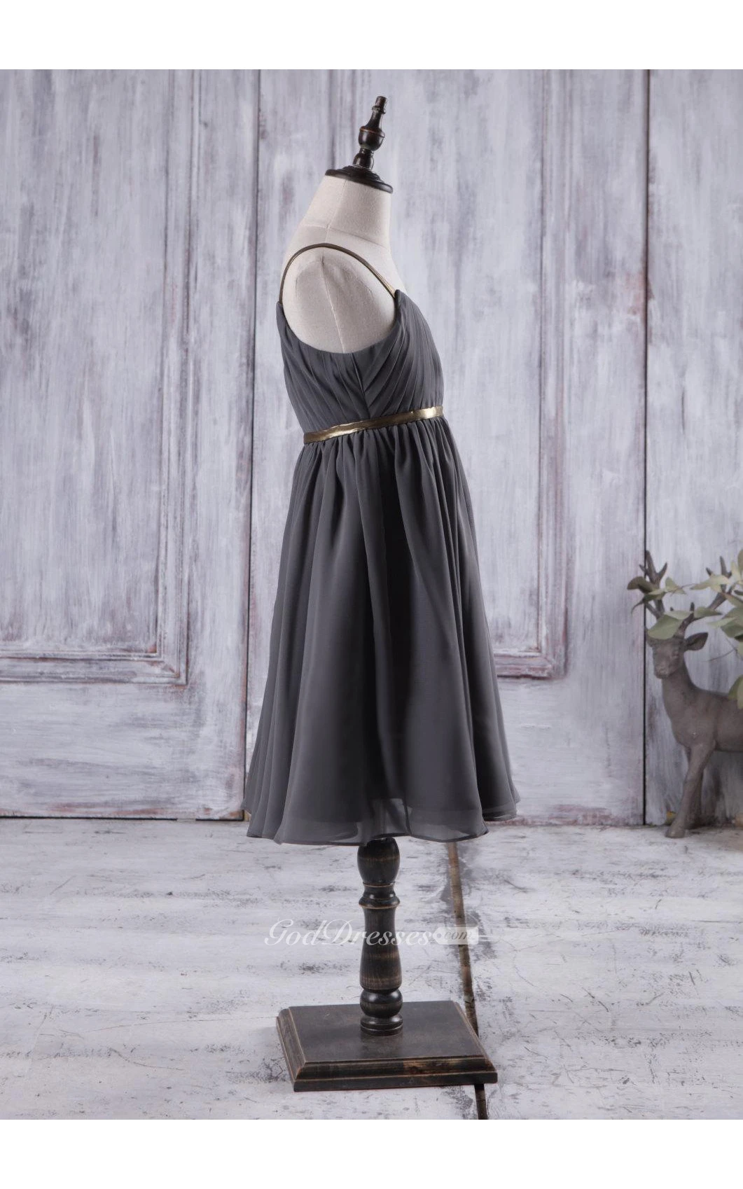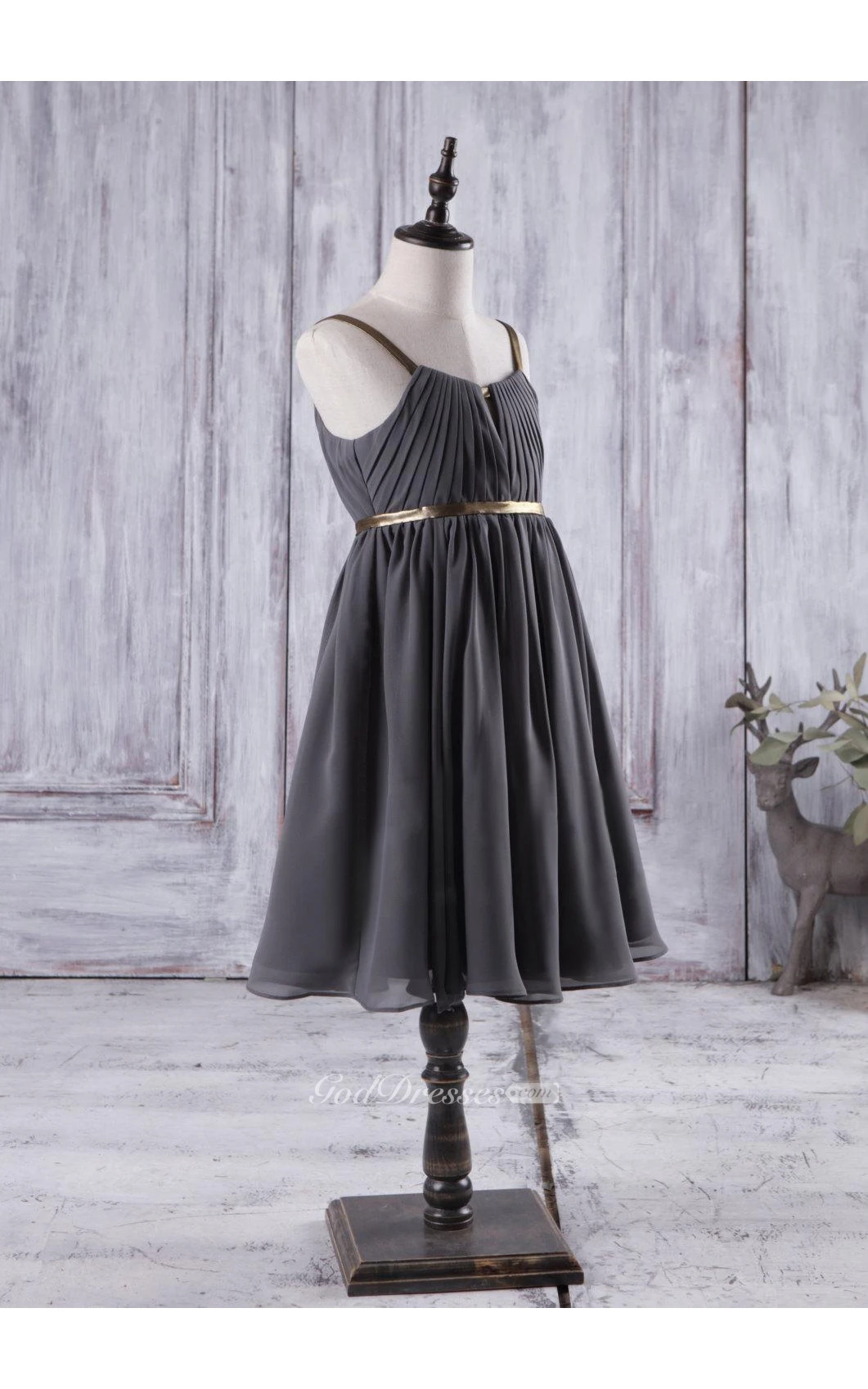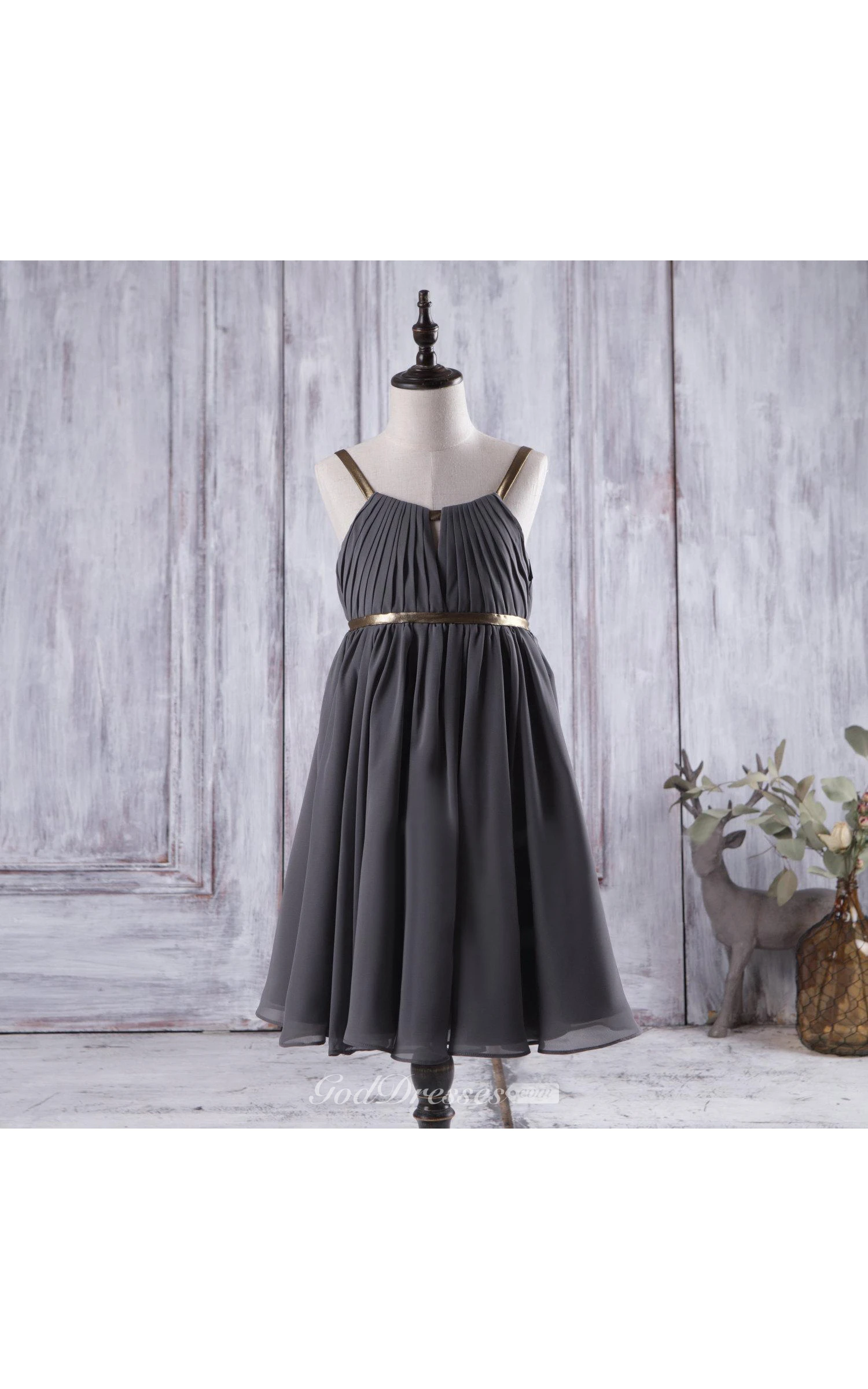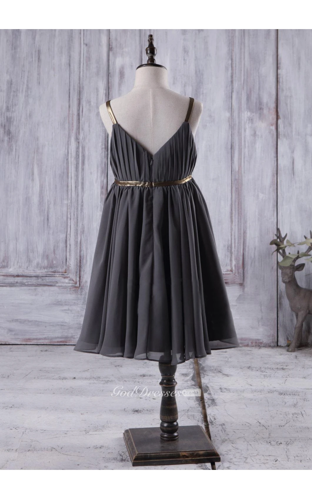 Spaghetti Straps Pleated Chiffon Long Dress With V Back and Keyhole