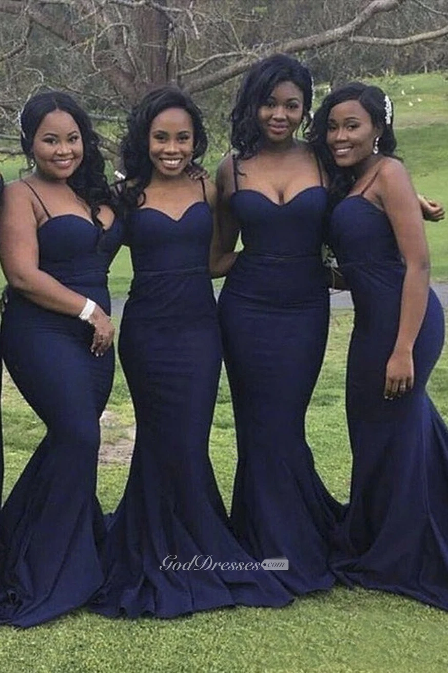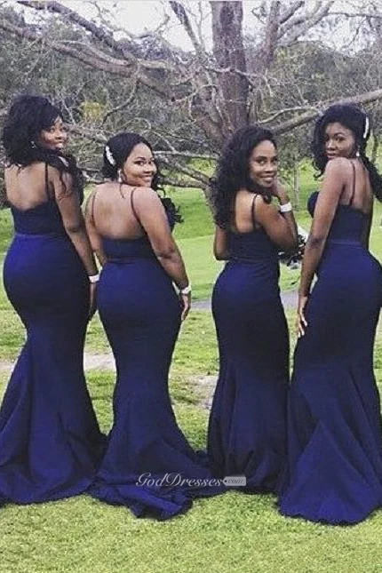 Spaghetti Straps Sexy Mermaid Sweetheart Open Back Bridesmaid Dress With Ruching