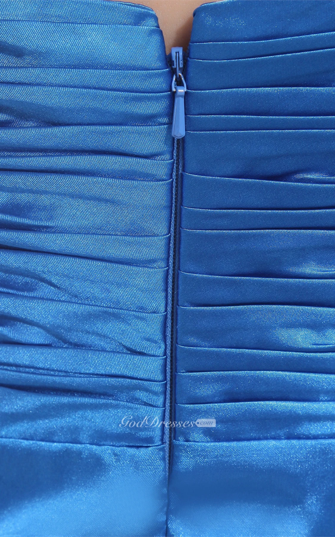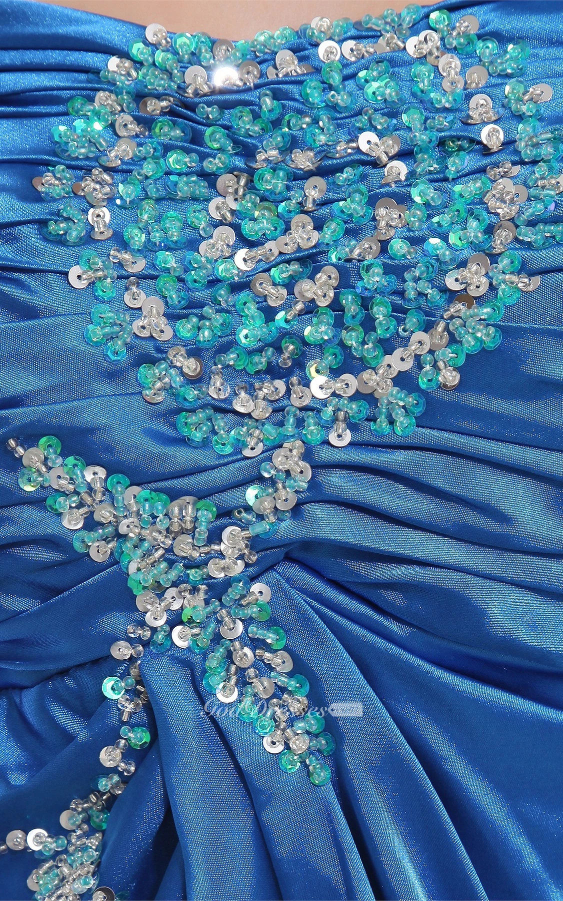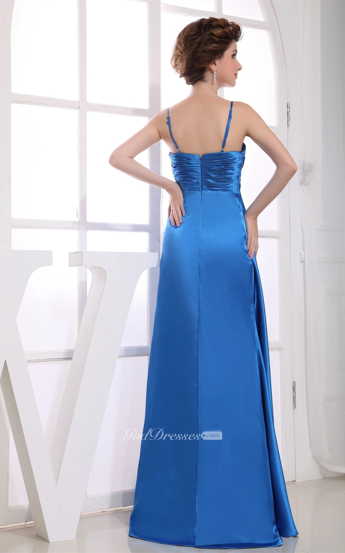 Spaghetti Straps Sleeveless Front Split Satin Dress With Beadings Zipper Back