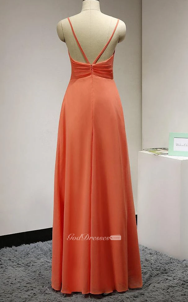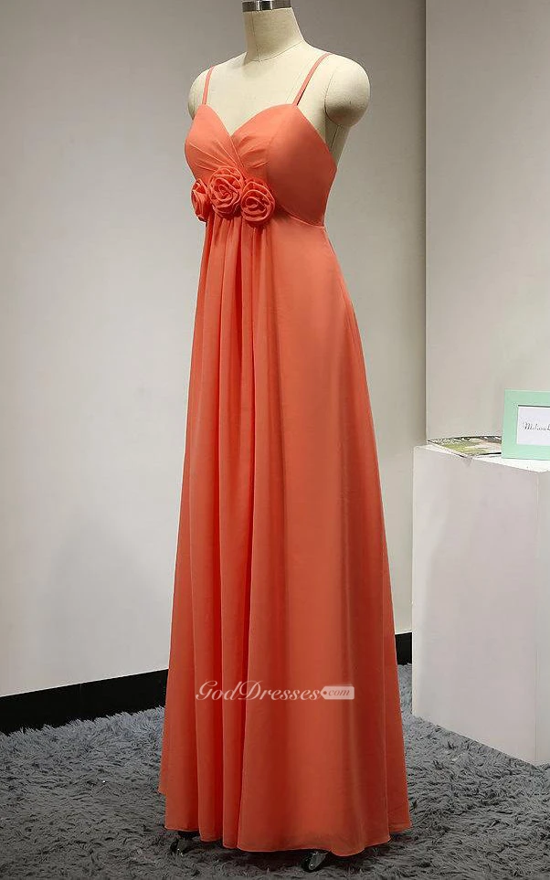 Spaghetti Straps Sweetheart Pleated A-line Chiffon Long Dress With Flower