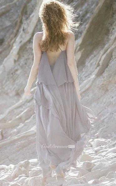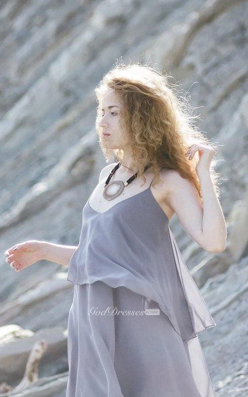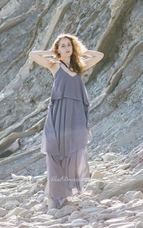 Spaghetti Straps V Neck Layered Chiffon A-line Long Dress Criss-cross Back