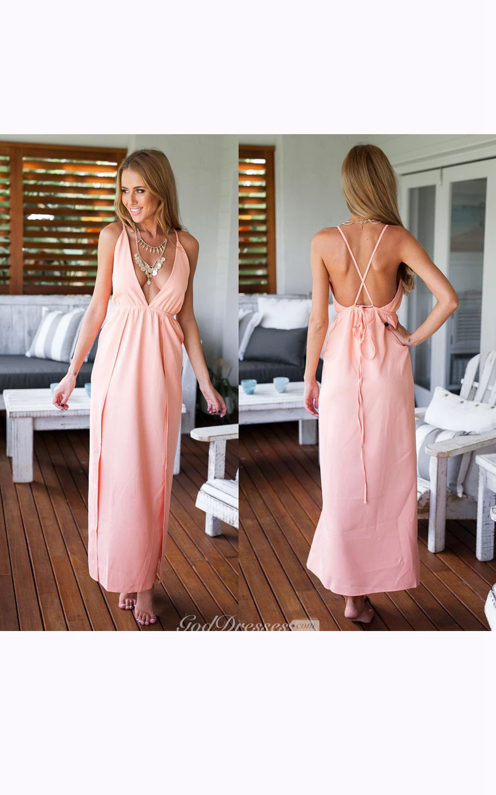 Spaghetti Straps V-neck Sleeveless Chiffon Dress