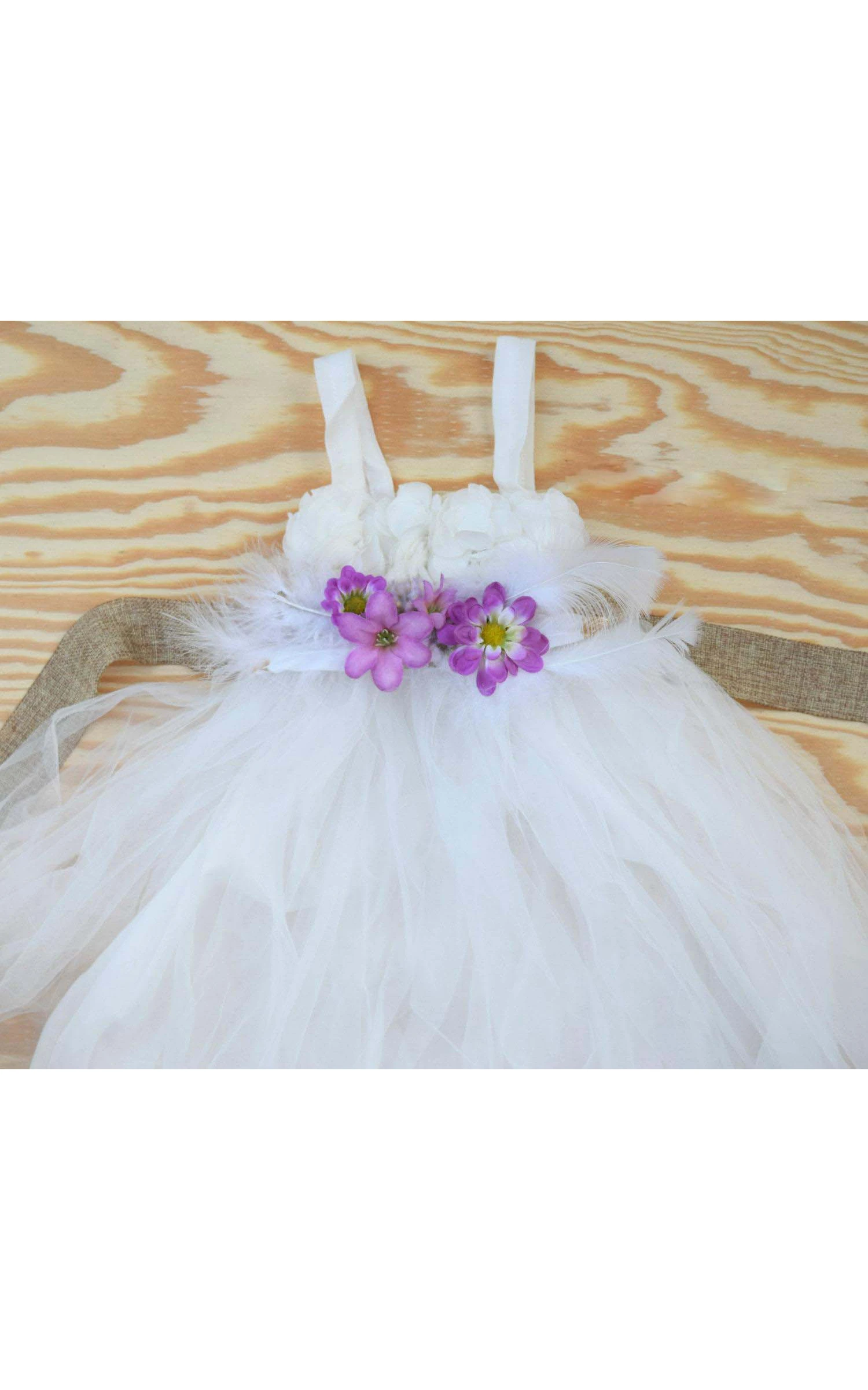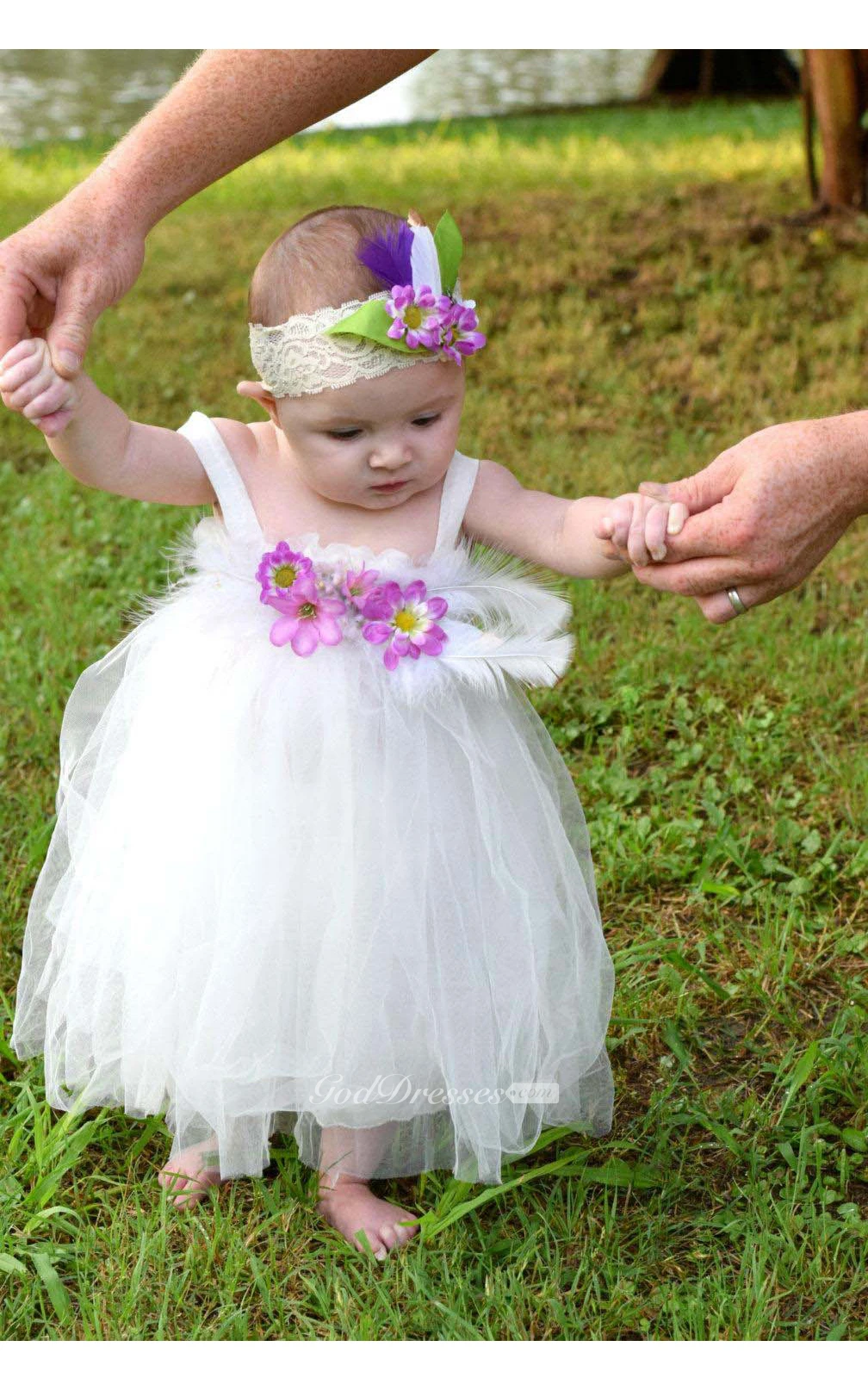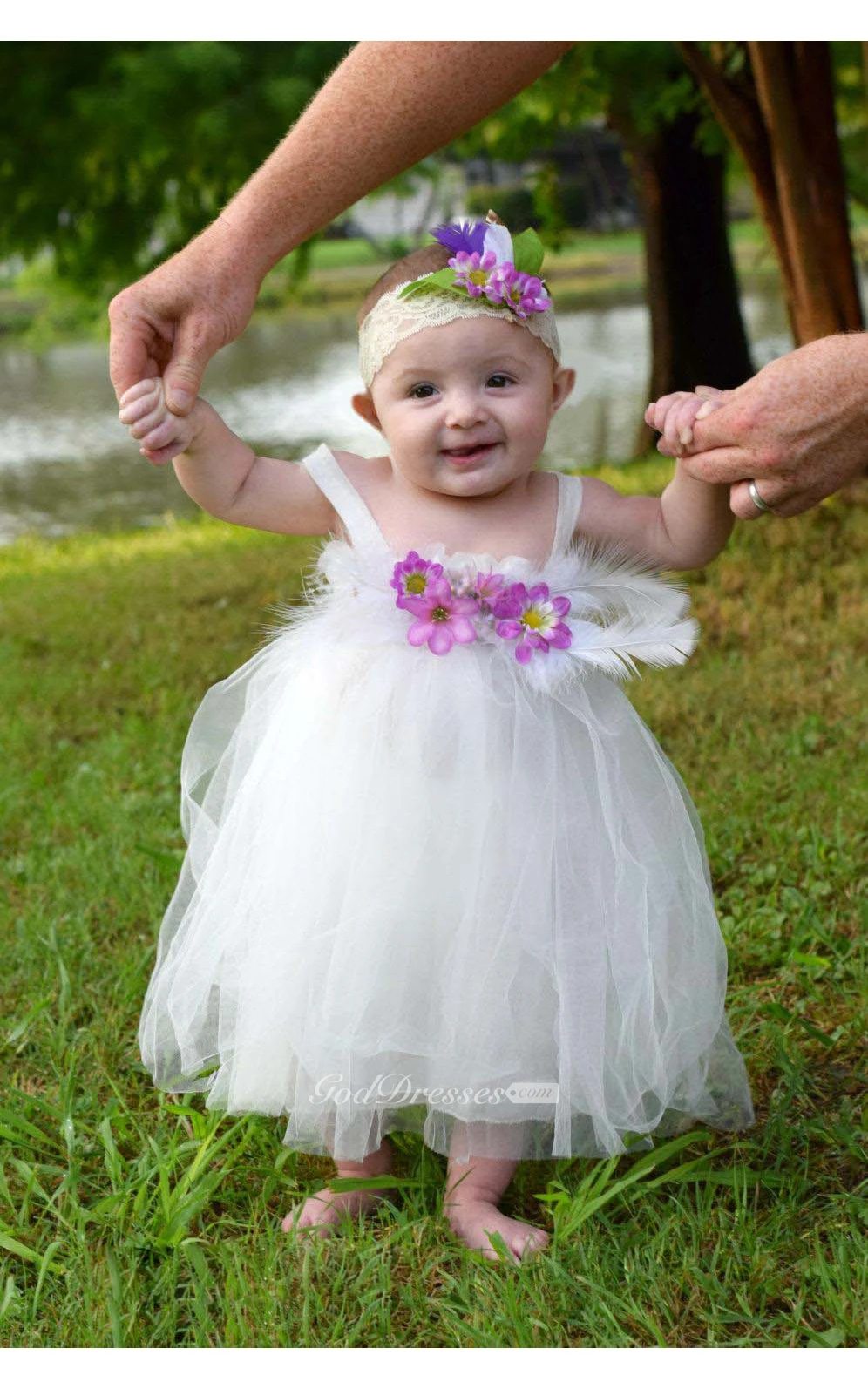 Square Neck Empire Tulle Ball Gown With Flowers and Feathers