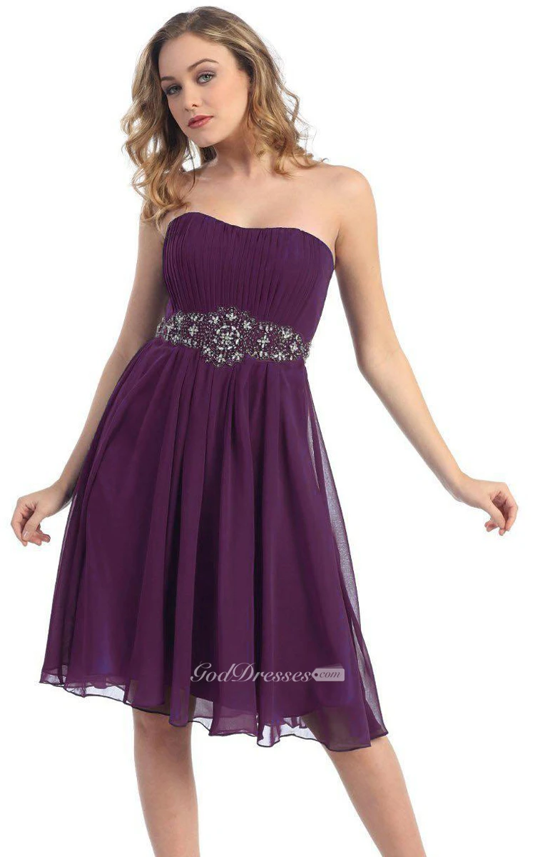 Strapelss A-line Knee-length Dress With Beaded Waist