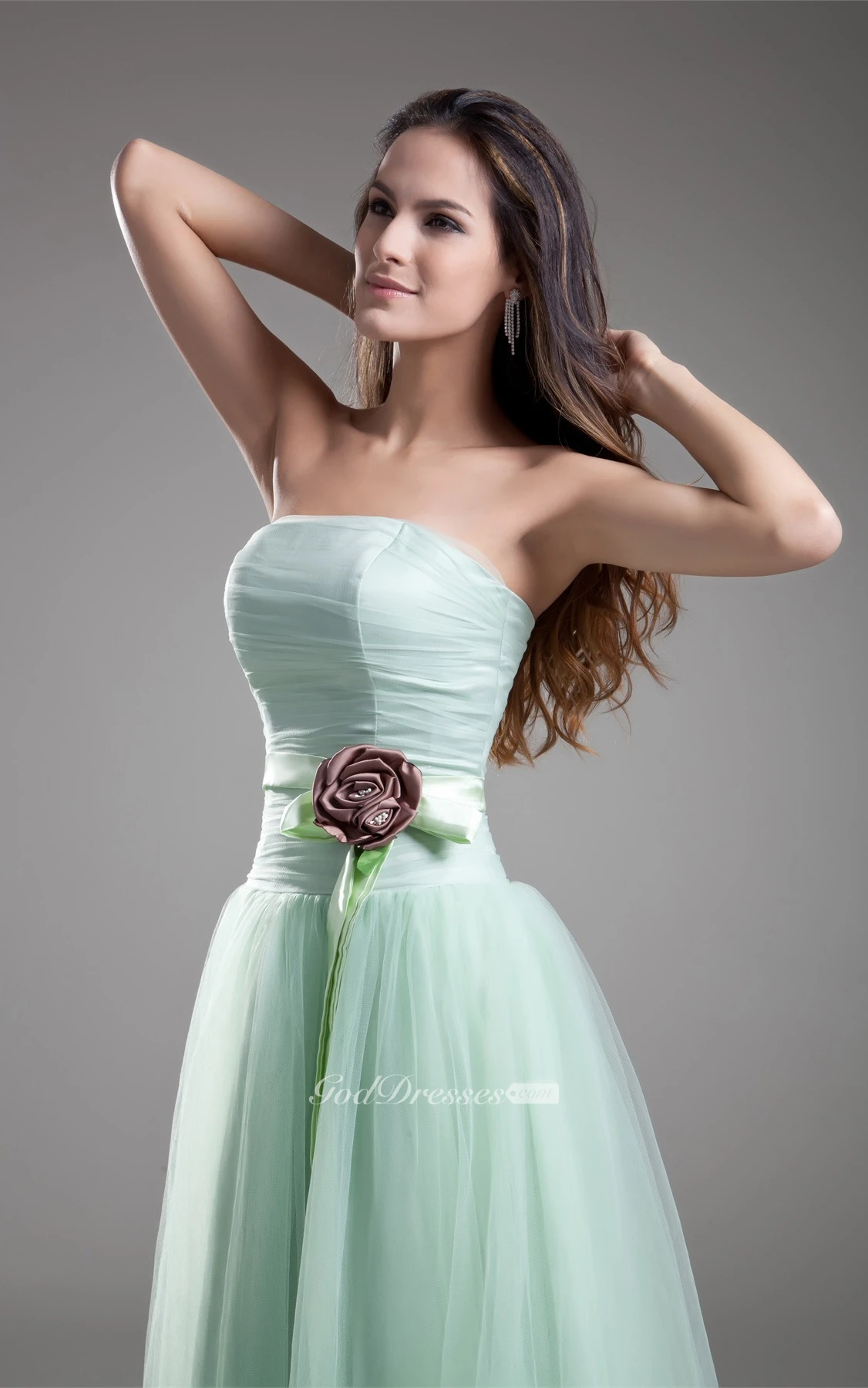 Strapless A-Line Chiffon Flower and Gown With Pleats