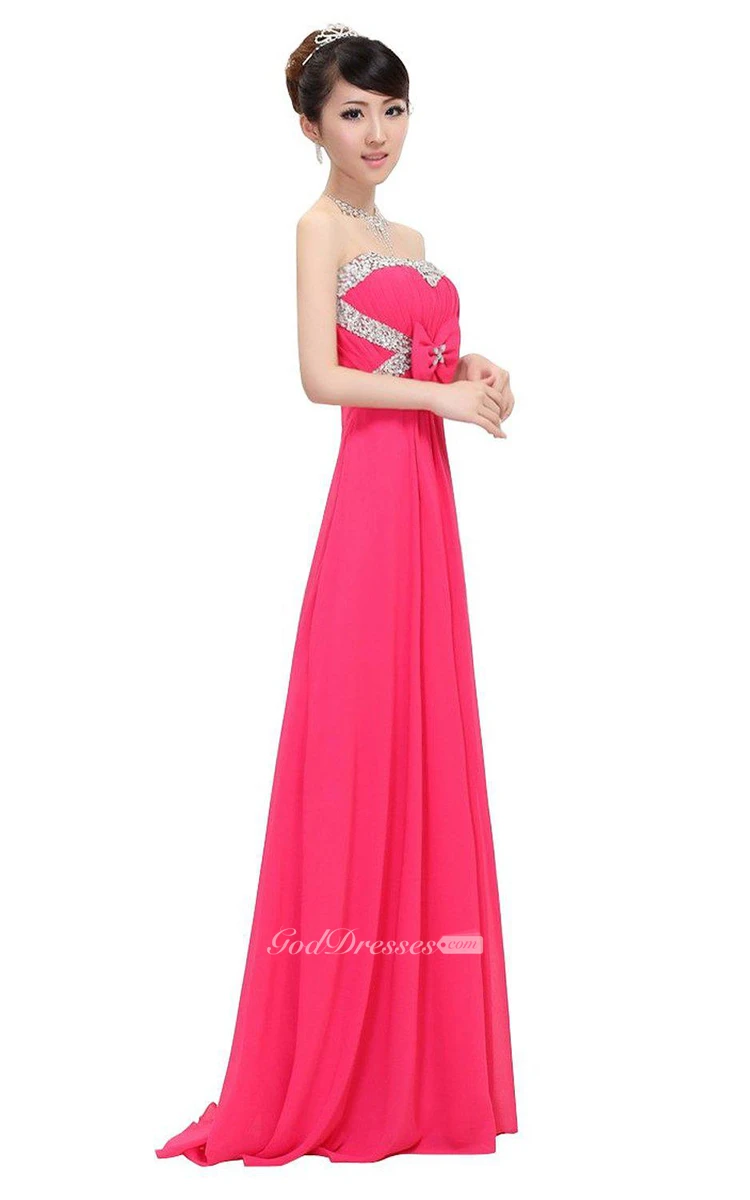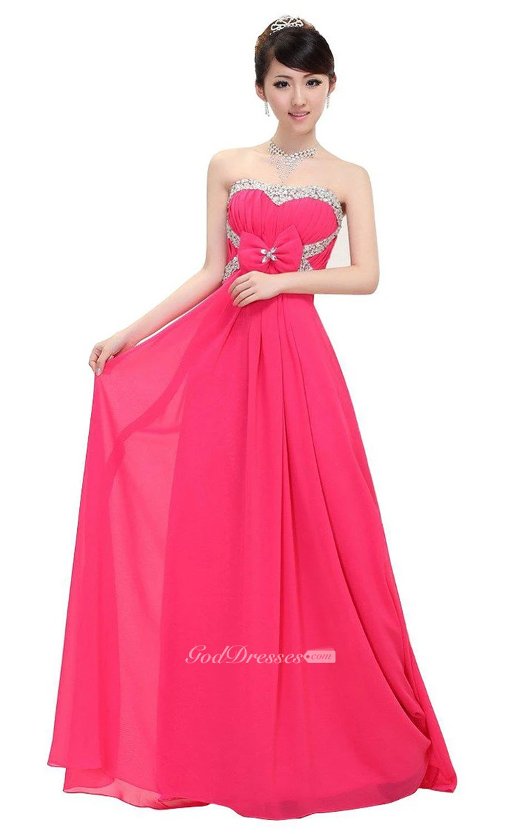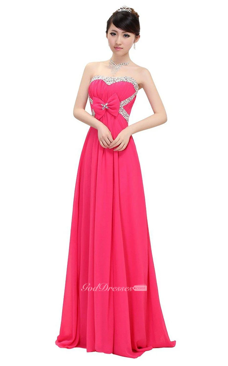 Strapless A-line Chiffon Gown With Beadings and Bow