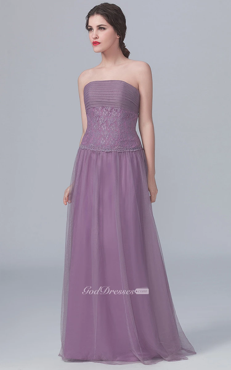 Strapless A-Line Gown With 3-4-Sleeved Lace Jacket