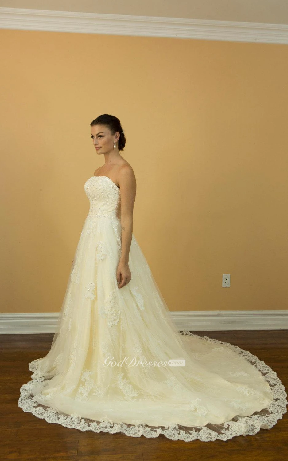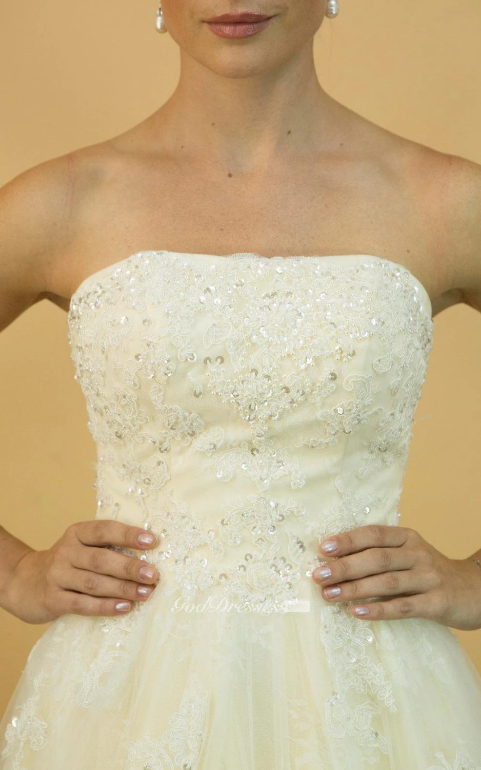 Strapless A-Line Lace Dress With Beadings and Low-V Back