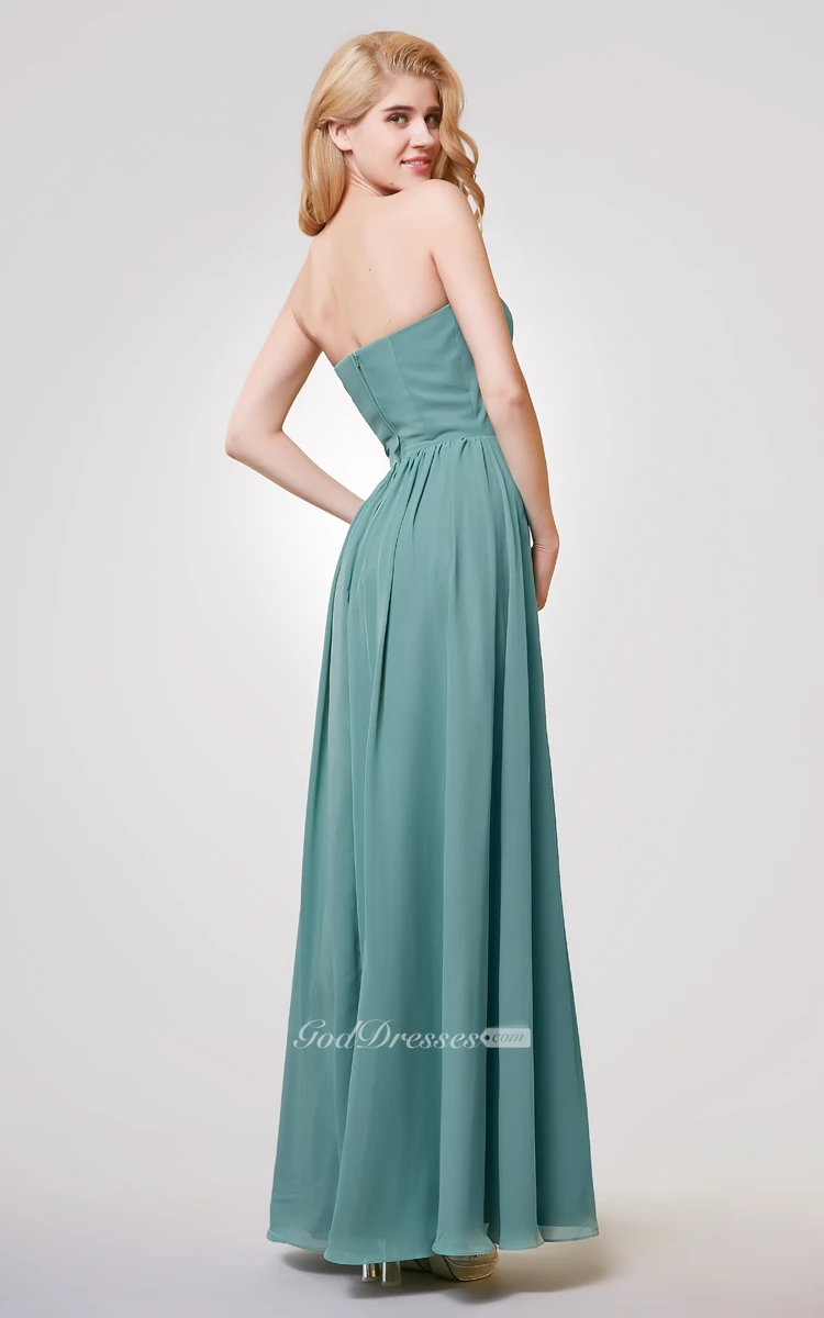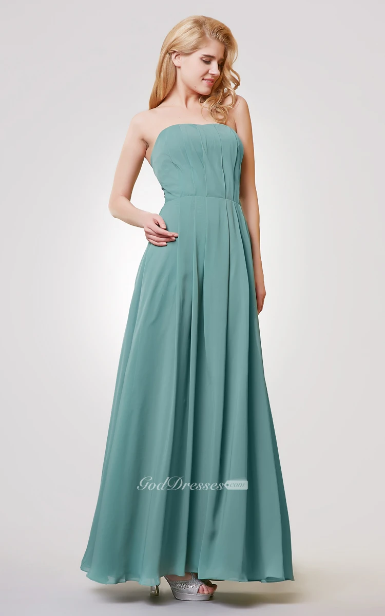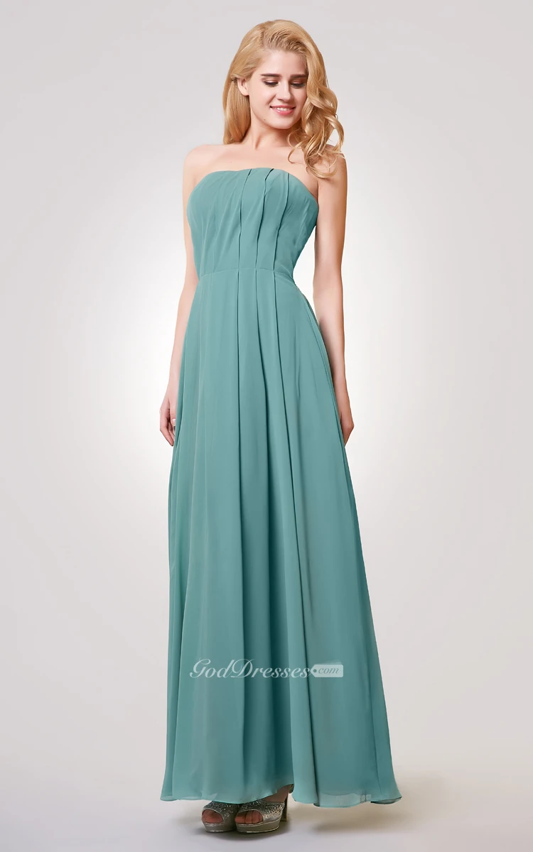 Strapless A-line Long Pleated Chiffon Dress