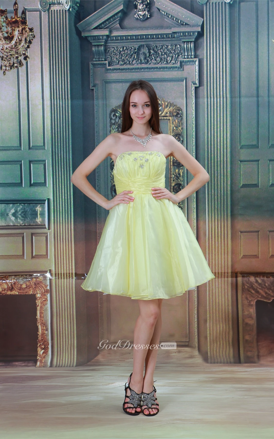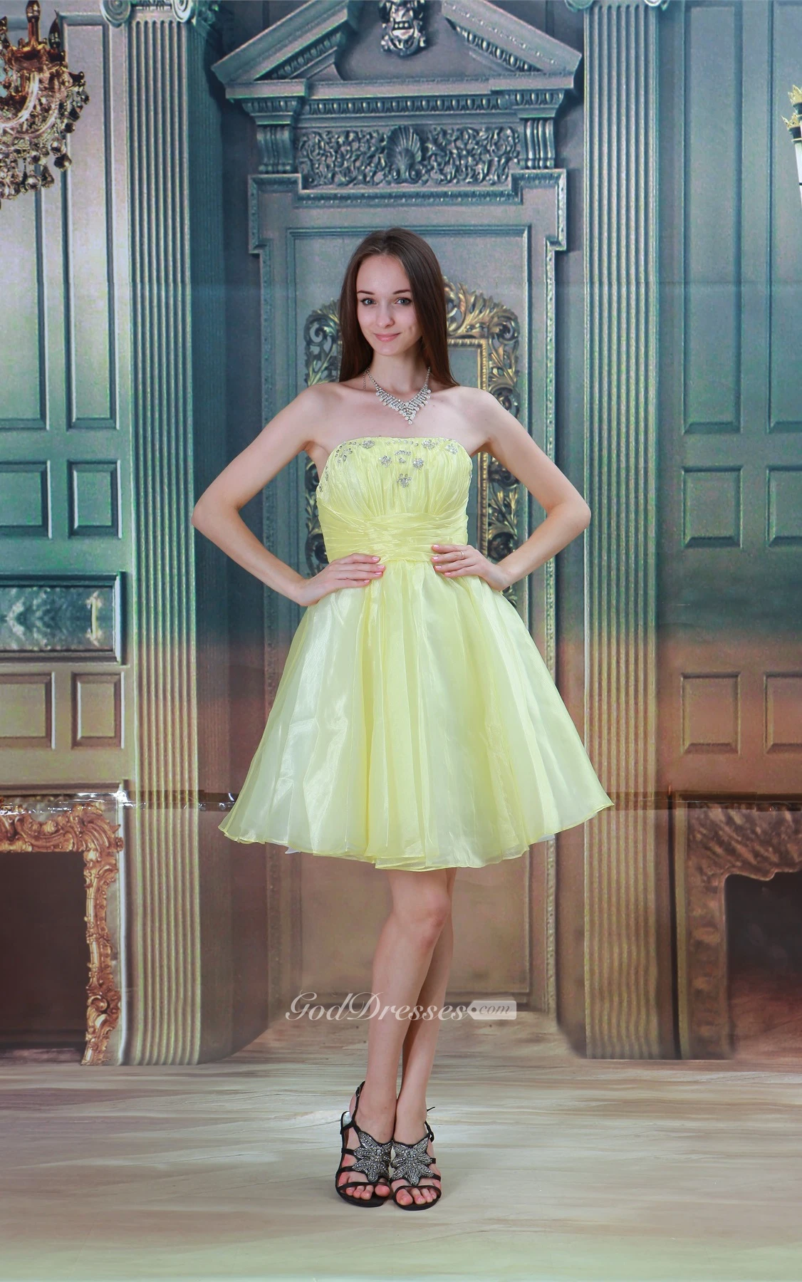 Strapless A-Line Midi Beading and Dress With Pleats