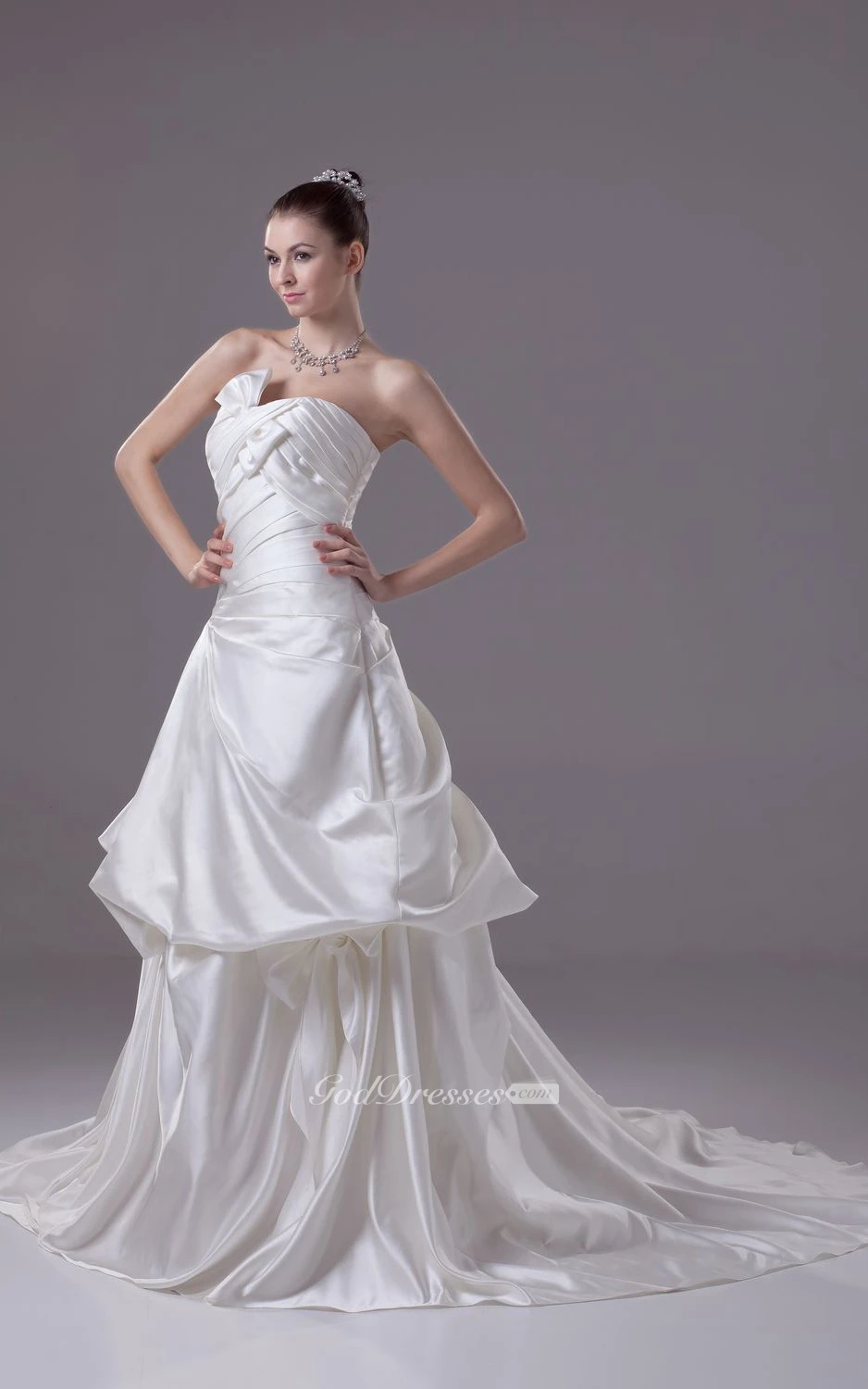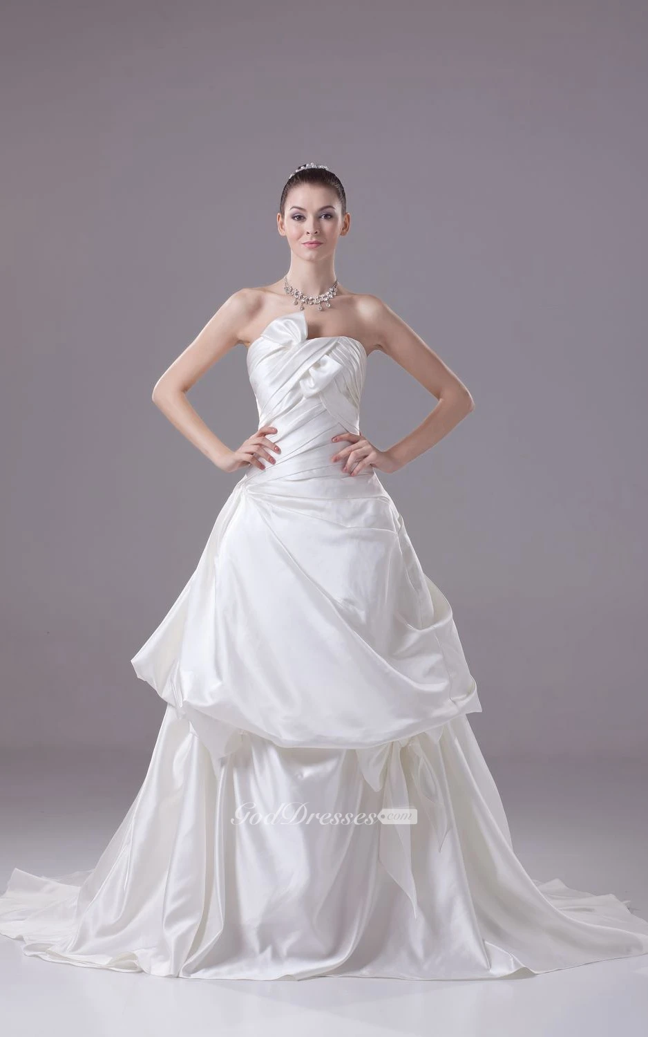 Strapless A-Line Pick-Up Dress With Side Ruching and Zipper Back