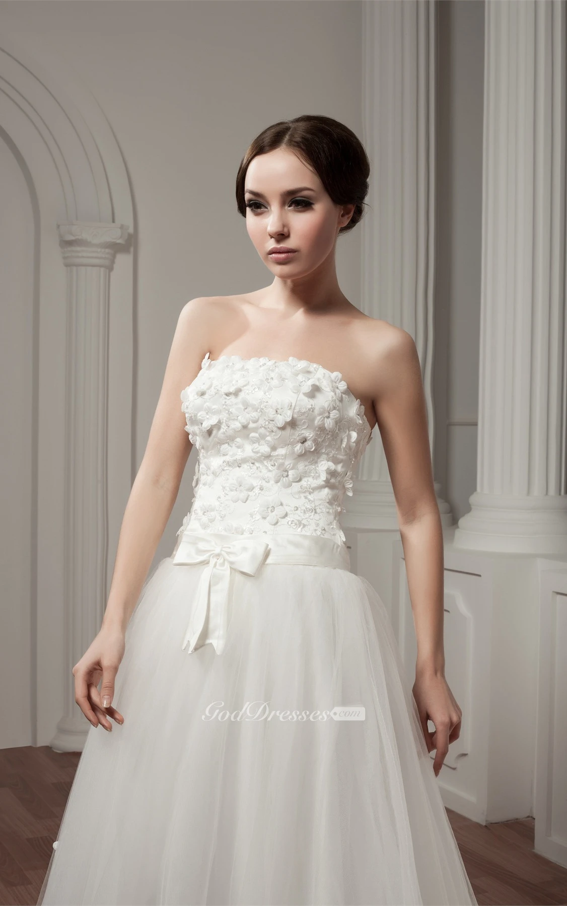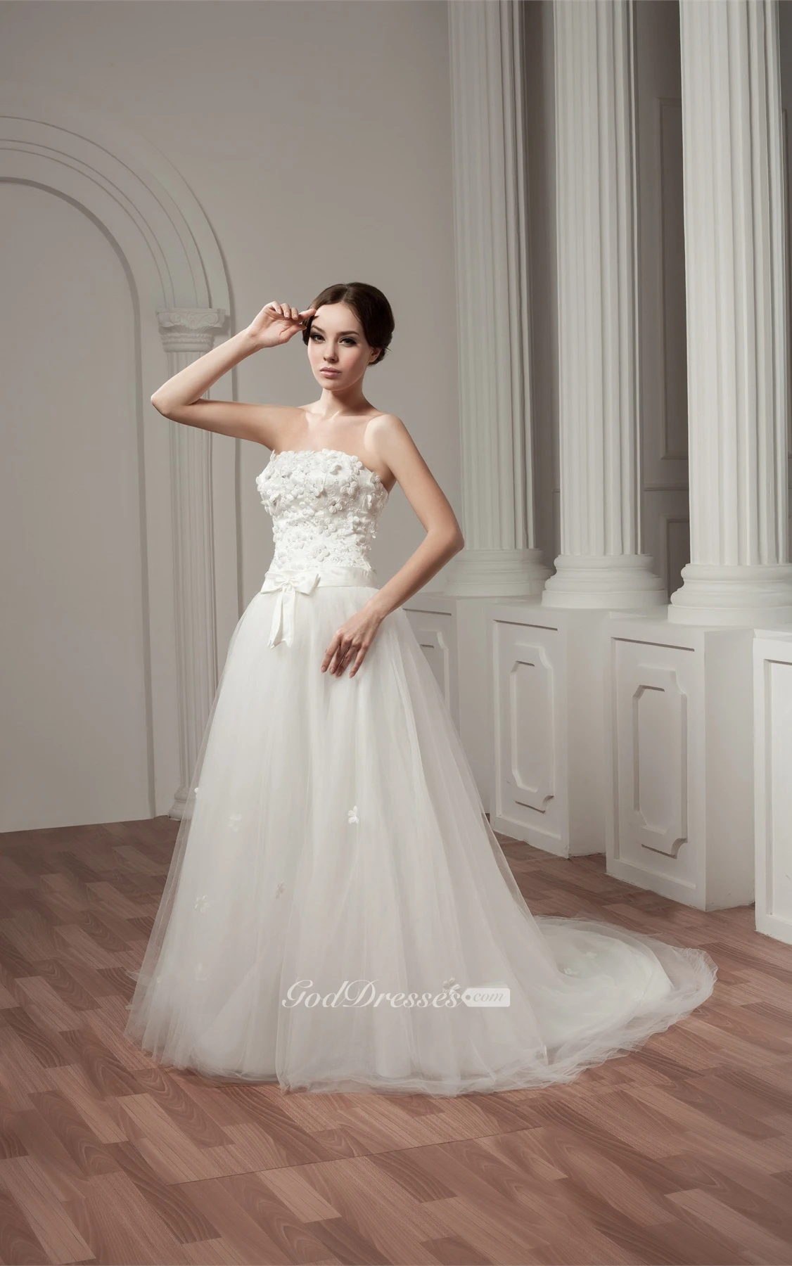 Strapless A-Line Tulle Overlay and Gown With Floral Embellishment