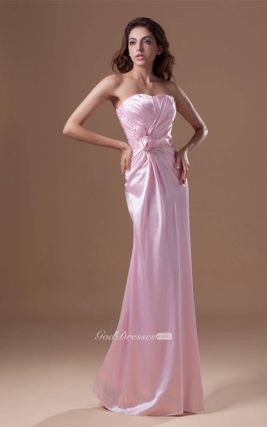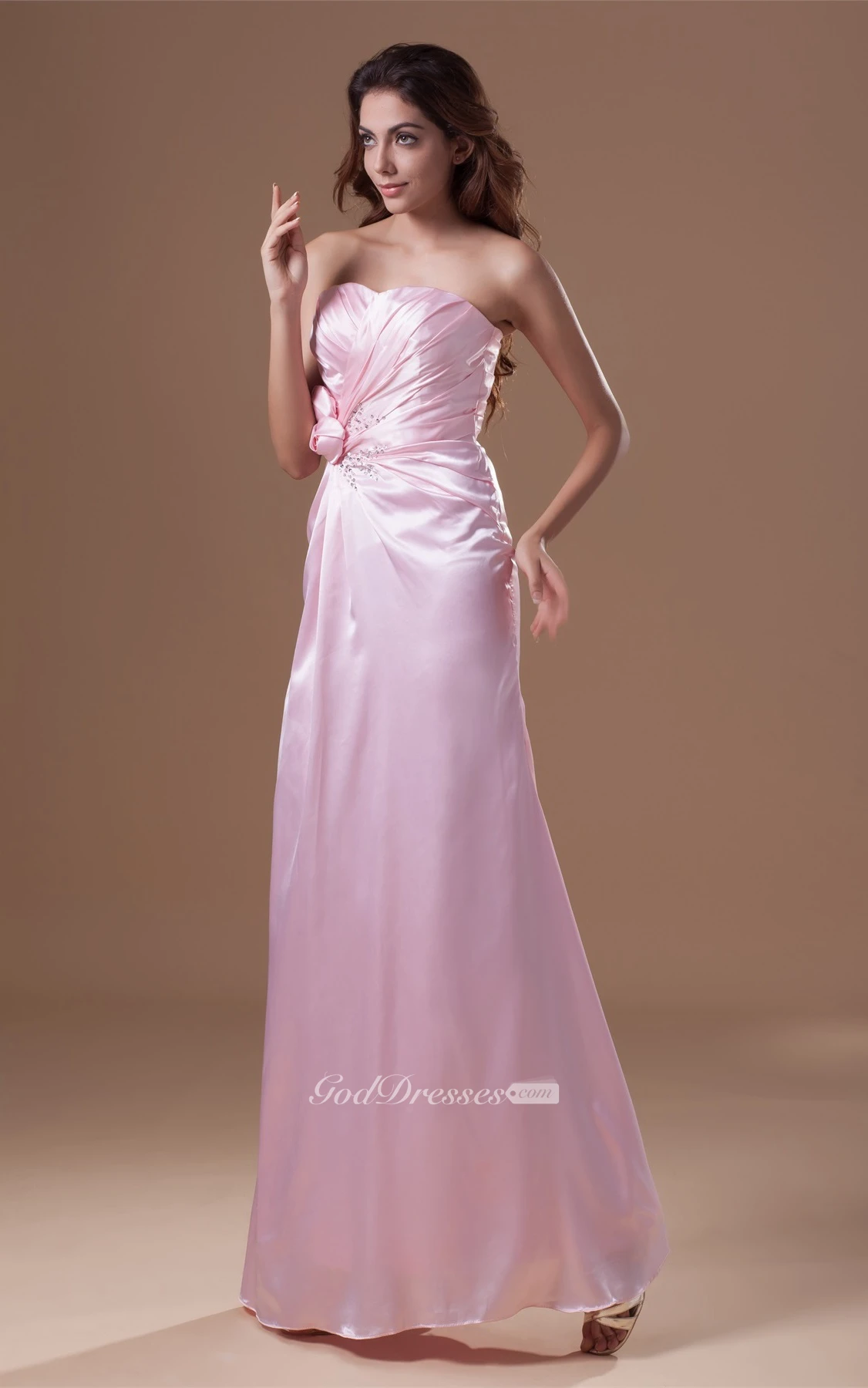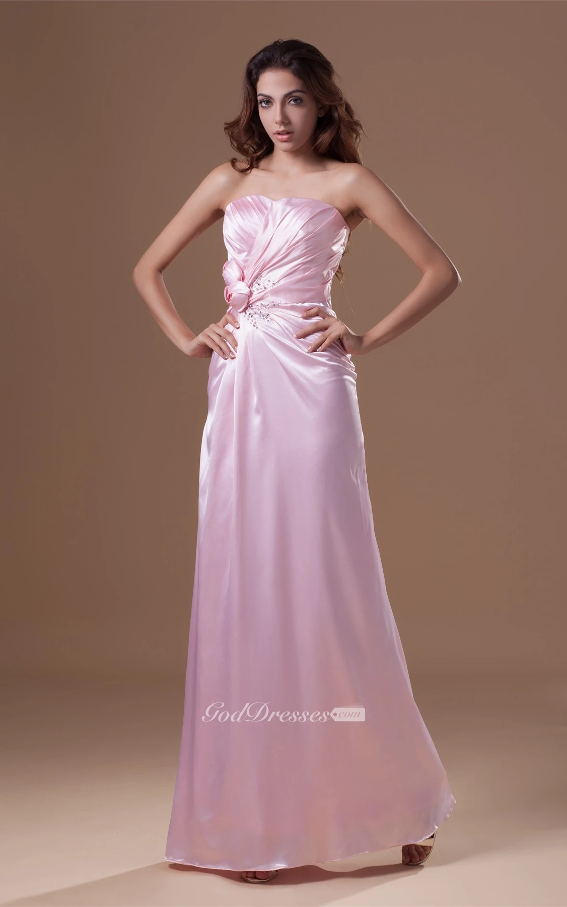 Strapless Ankle-Length Satin Beading and Dress With Flower